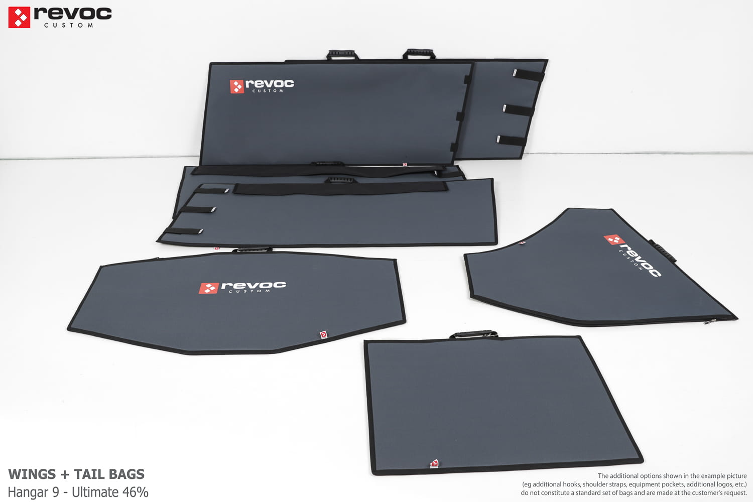 We create custom wing bags especially for you based on your individual order. You can select the colors, add a logo, include the model name on the cover, or choose additional markings and useful options.