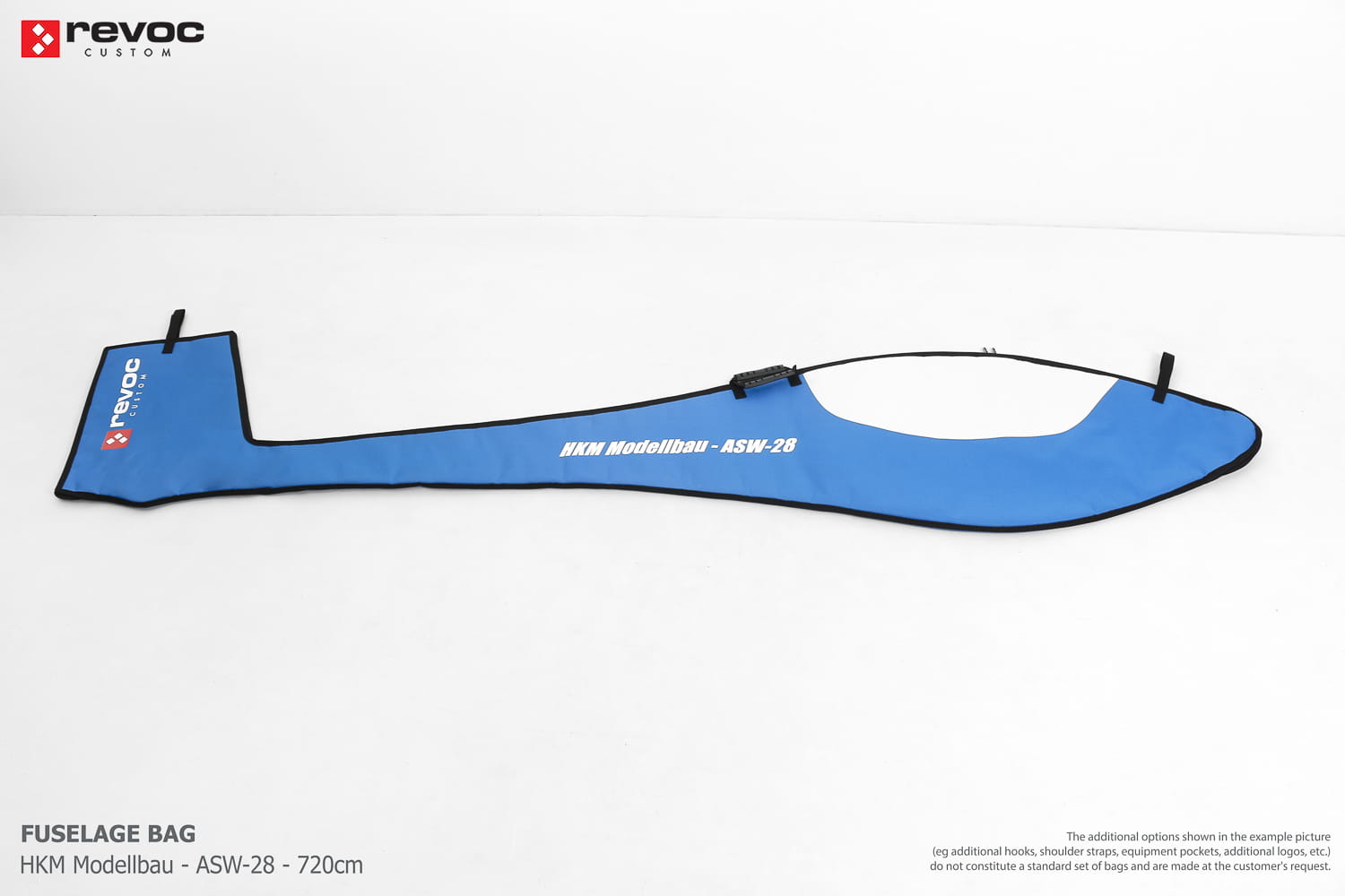 We make bags especially for you on your individual order. You can decide on the colors, choose a logo, put the model name on the cover, additional markings or choose a number of useful additional options. The custom color scheme which is a detailed reproduction of the models painting can be ordered individually - contact us for the offer: revoc@revoc.eu