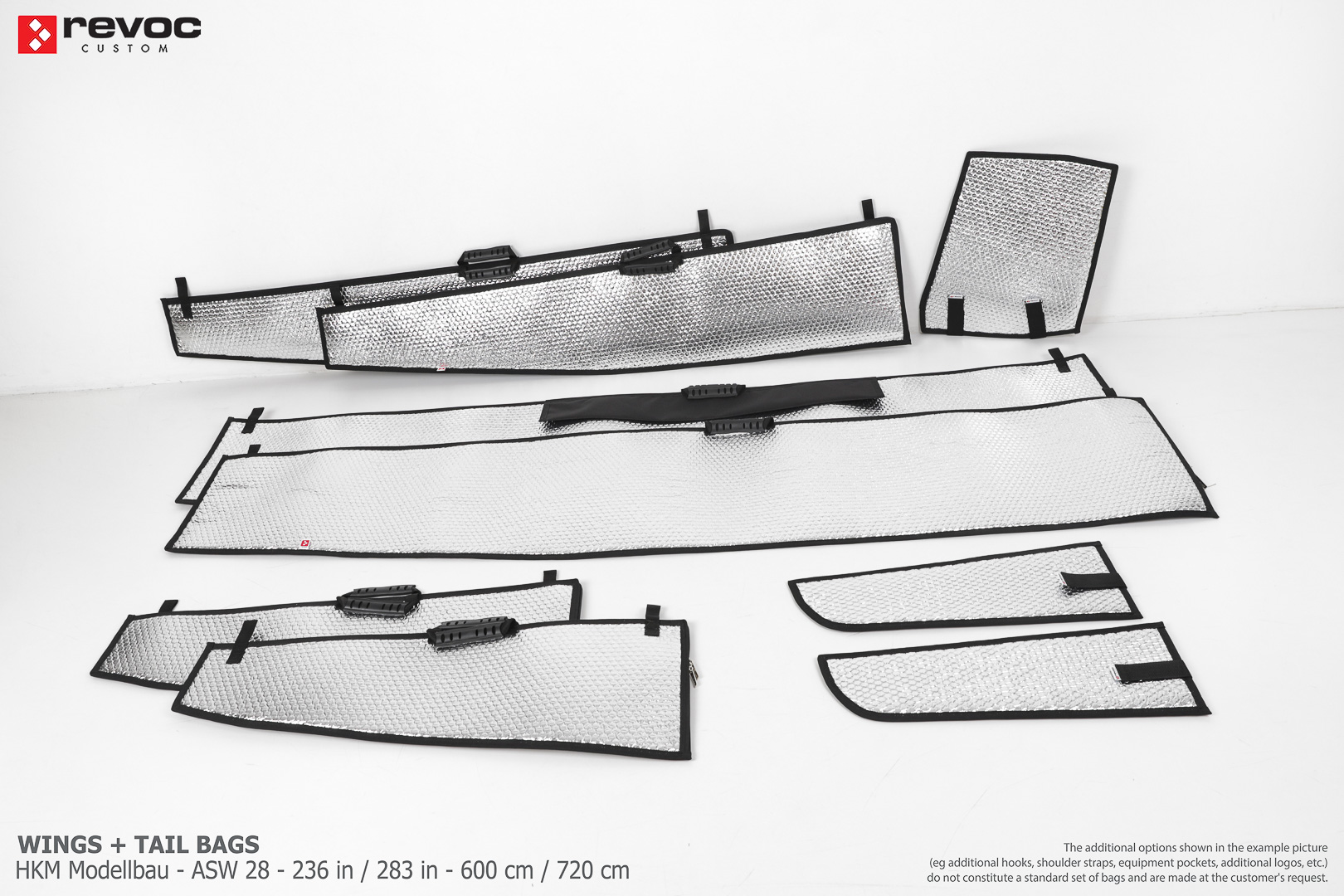 All REVOC bags are made especially for your model. They are completely tailored to the specific structure of your aircraft - regardless of whether it is a JET model, aerobatic model, glider or bi-plane model. Bags are made according to your comments, individual parameters and wishes. Please write your additional comments and wishes in the COMMENT section or send them directly to the e-mail revoc@revoc.eu after placing the order.