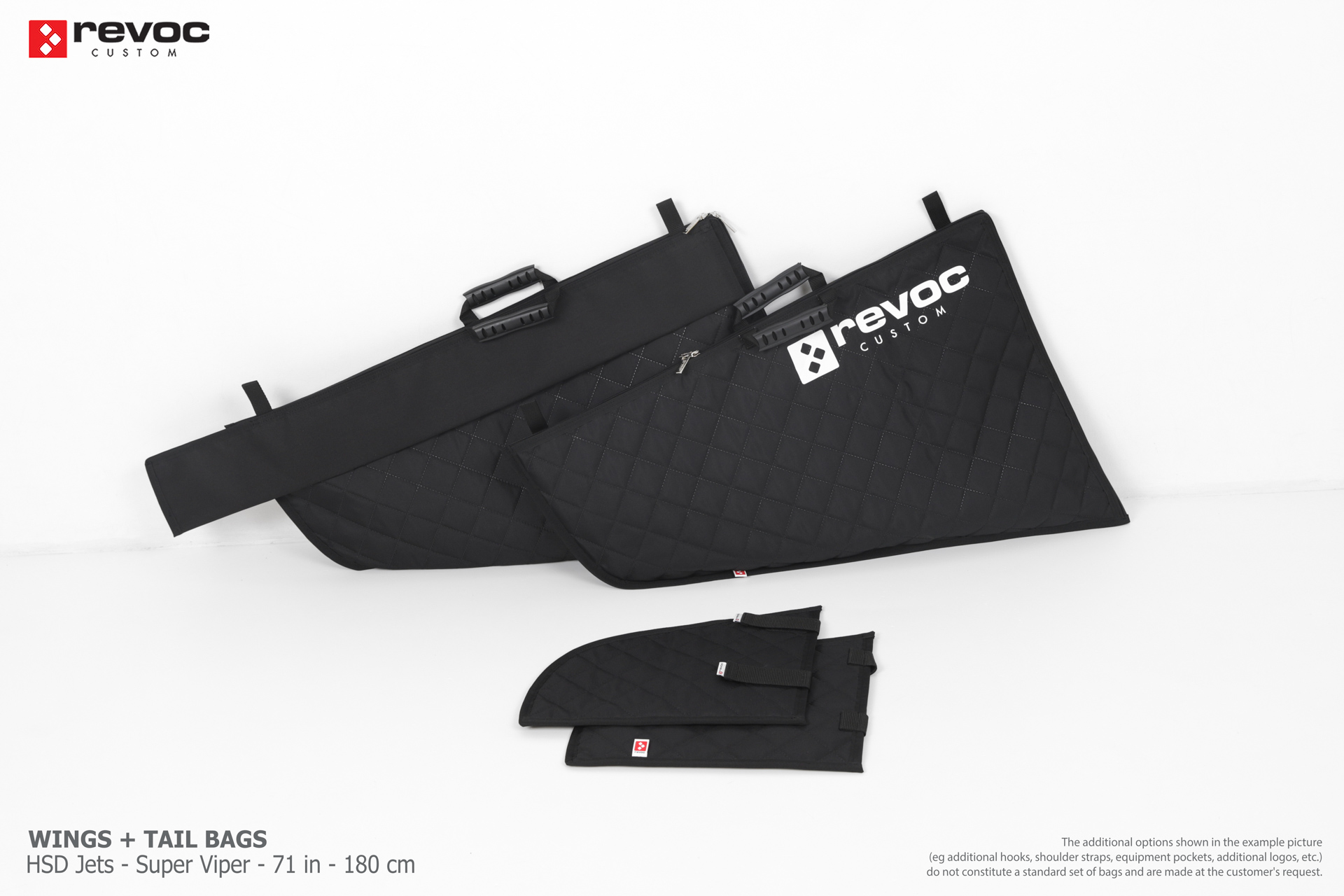 We create custom wing bags especially for you based on your individual order. You can select the colors, add a logo, include the model name on the cover, or choose additional markings and useful options.