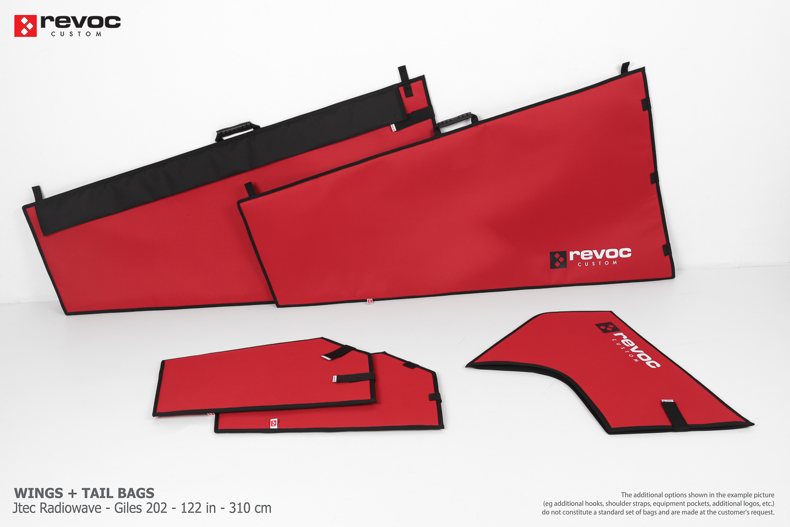 We make bags especially for you on your individual order. You can decide on the colors, choose a logo, put the model name on the cover, additional markings or choose a number of useful additional options. The custom color scheme which is a detailed reproduction of the model's painting can be ordered individually - contact us for the offer: revoc@revoc.eu