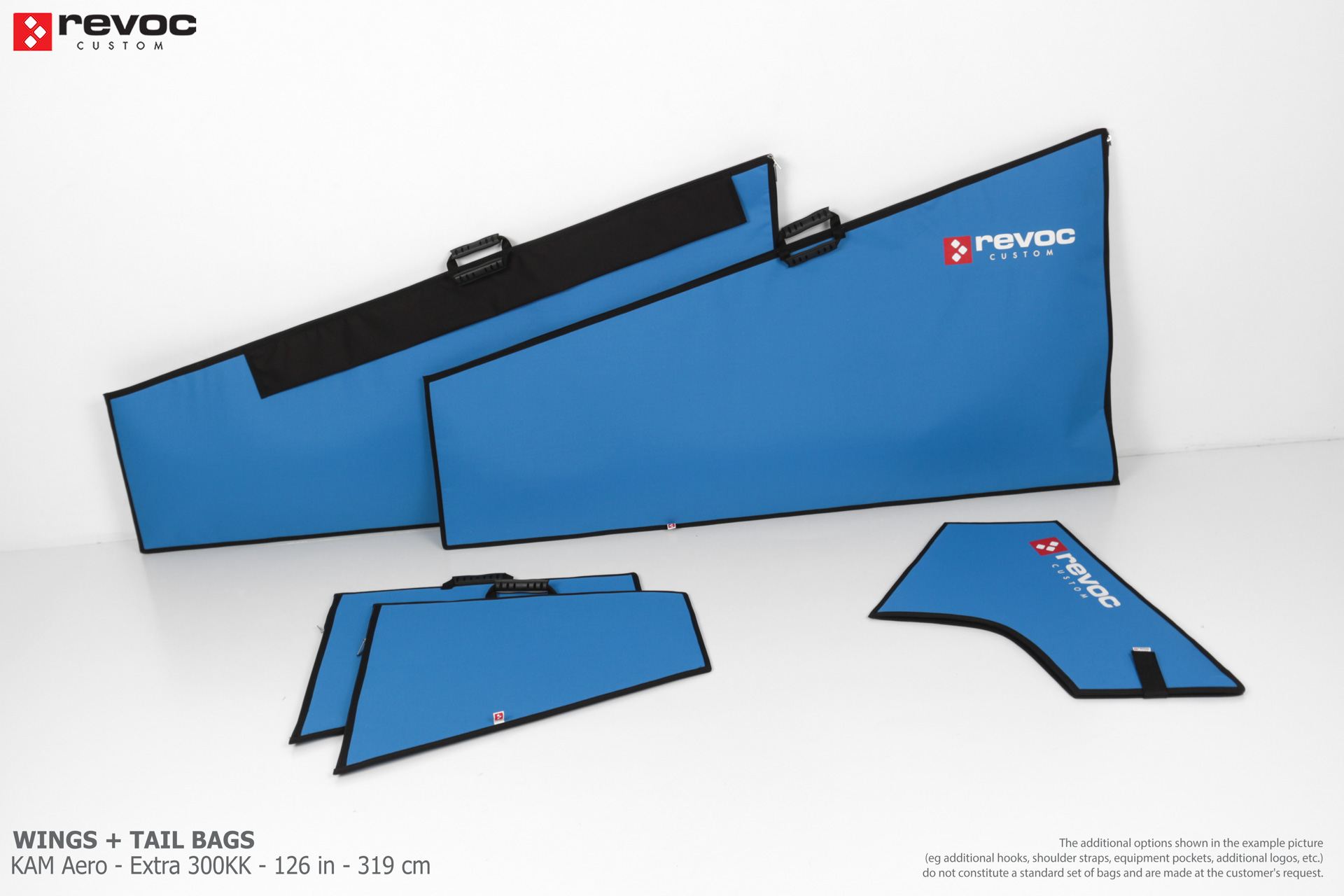 We make bags especially for you on your individual order. You can decide on the colors, choose a logo, put the model name on the cover, additional markings or choose a number of useful additional options. The custom color scheme which is a detailed reproduction of the model's painting can be ordered individually - contact us for the offer: revoc@revoc.eu