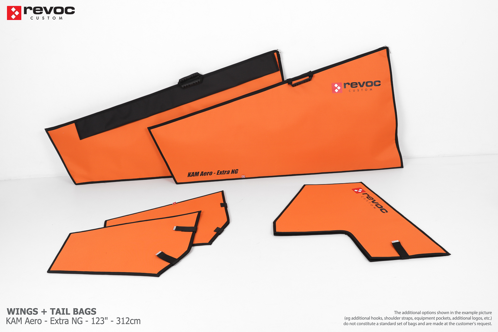 We create custom wing bags especially for you based on your individual order. You can select the colors, add a logo, include the model name on the cover, or choose additional markings and useful options.