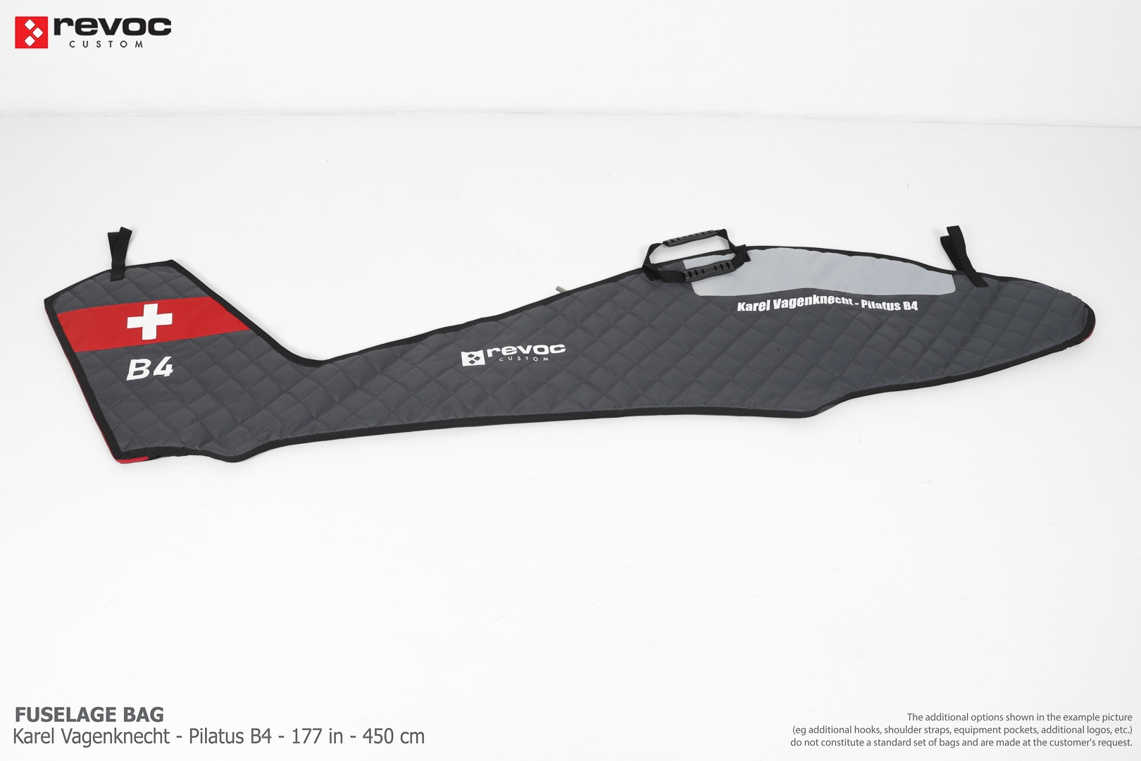 We make bags especially for you on your individual order. You can decide on the colors, choose a logo, put the model name on the cover, additional markings or choose a number of useful additional options. The custom color scheme which is a detailed reproduction of the models painting can be ordered individually - contact us for the offer: revoc@revoc.eu