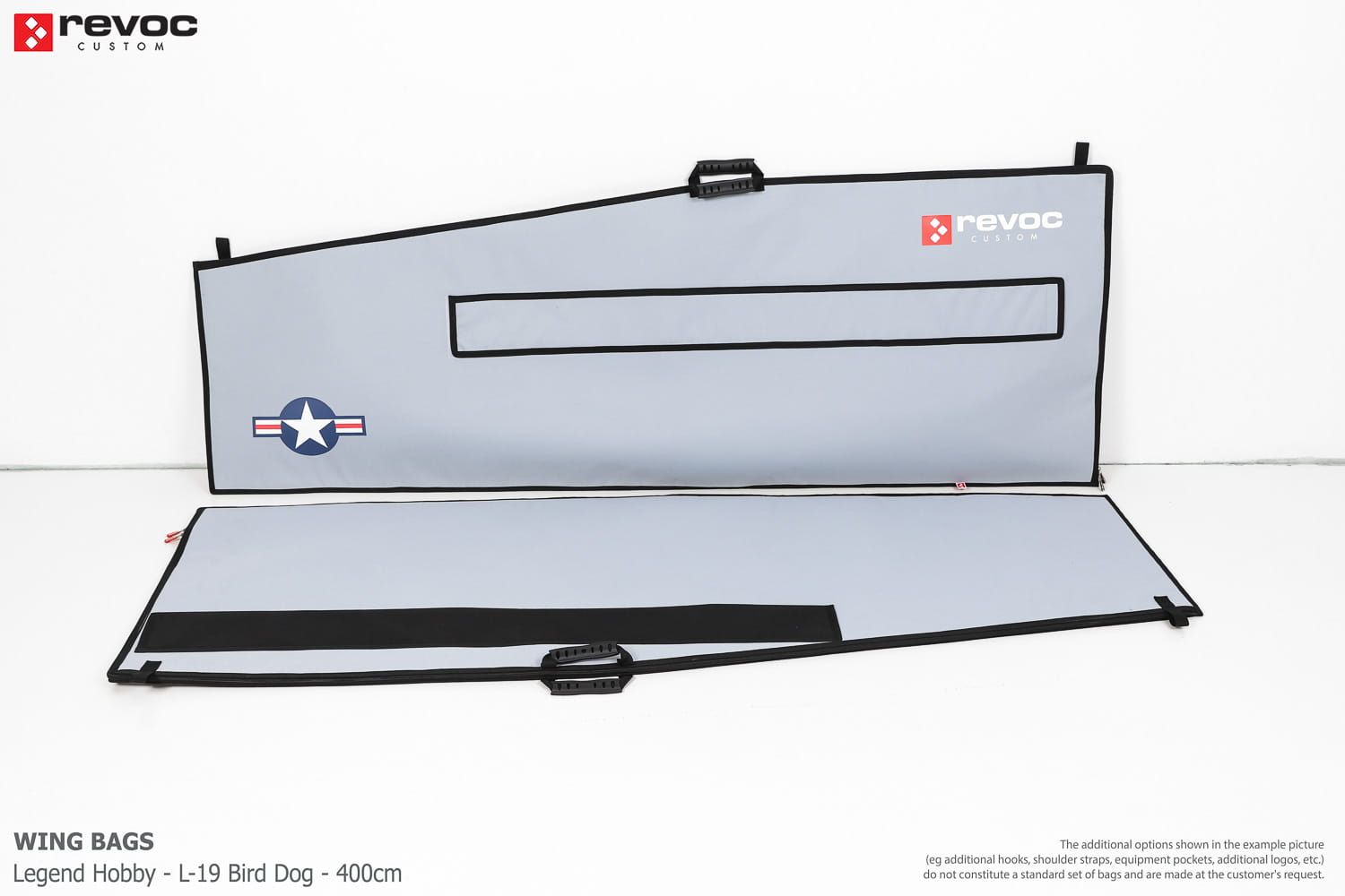 All REVOC RC bags are custom-made specifically for your model. Whether you have a jet, aerobatic aircraft RC, glider, or bi-plane RC model, our wing bags are completely tailored to fit the unique structure of your remote control planes. Each wing bag is crafted according to your individual preferences, parameters, and special requests. Please include any additional comments or wishes in the COMMENT section when placing your order, or email them directly to revoc@revoc.eu for a fully personalized wing bag RC experience.