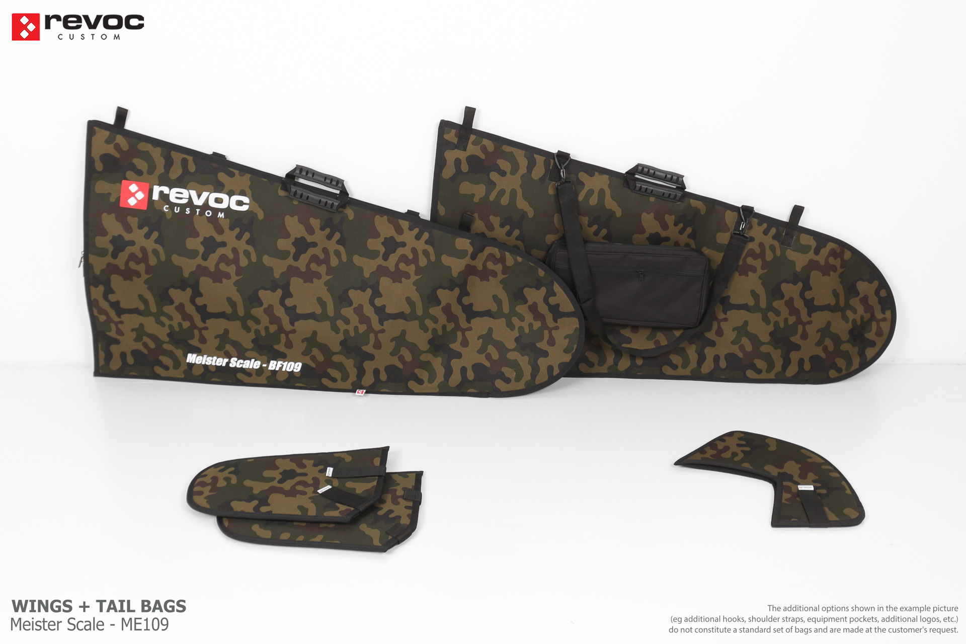 We make bags especially for you on your individual order. You can decide on the colors, choose a logo, put the model name on the cover, additional markings or choose a number of useful additional options. The custom color scheme which is a detailed reproduction of the model's painting can be ordered individually - contact us for the offer: revoc@revoc.eu