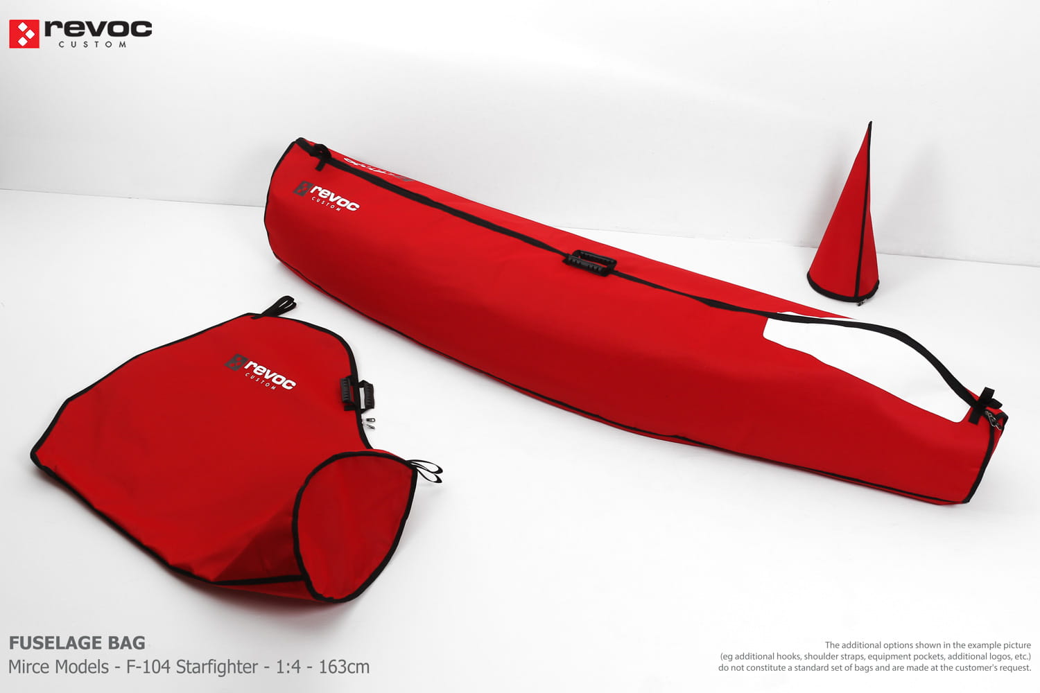 We make bags especially for you on your individual order. You can decide on the colors, choose a logo, put the model name on the cover, additional markings or choose a number of useful additional options. The custom color scheme which is a detailed reproduction of the models painting can be ordered individually - contact us for the offer: revoc@revoc.eu