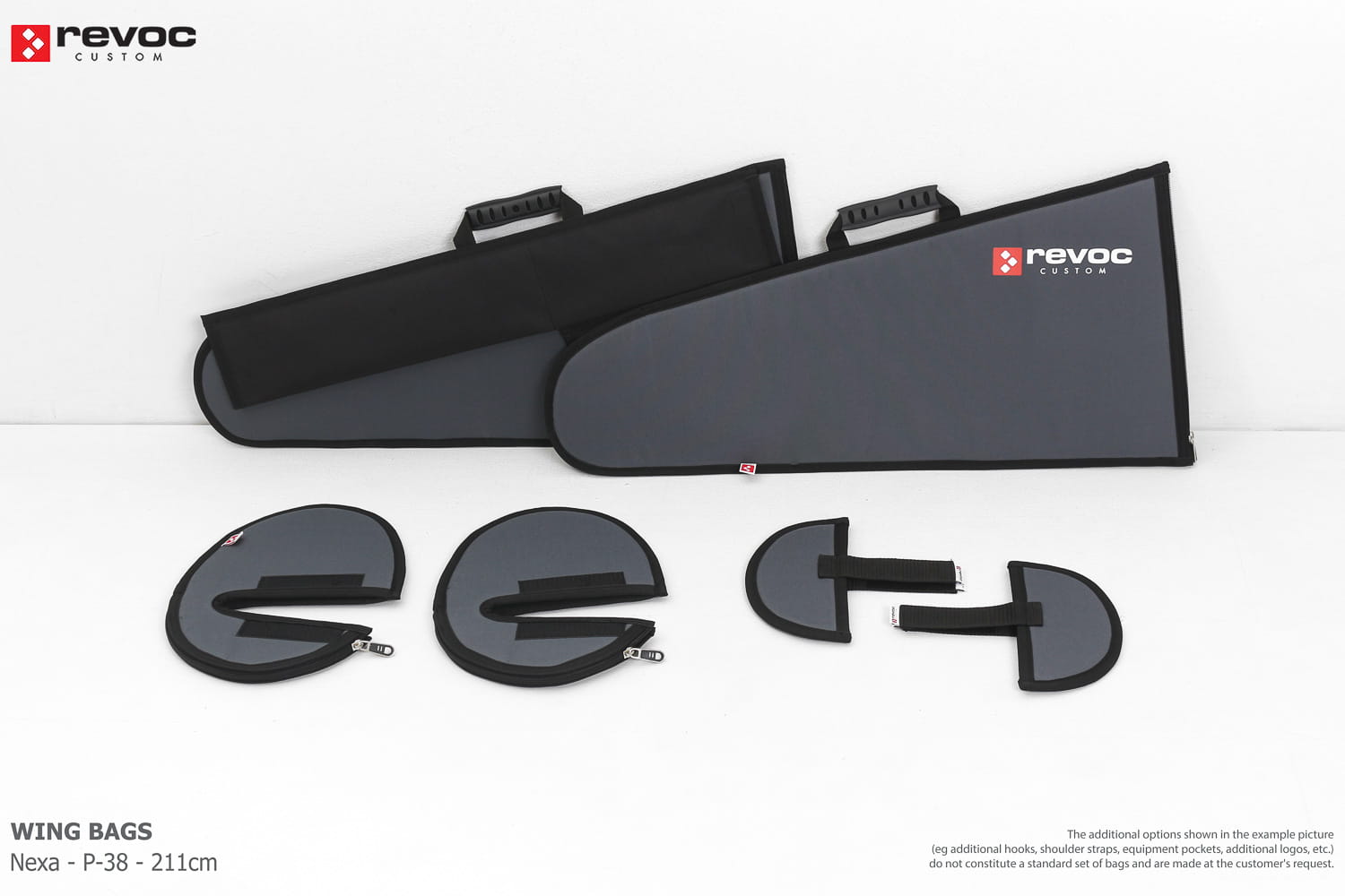 We create custom wing bags especially for you based on your individual order. You can select the colors, add a logo, include the model name on the cover, or choose additional markings and useful options.