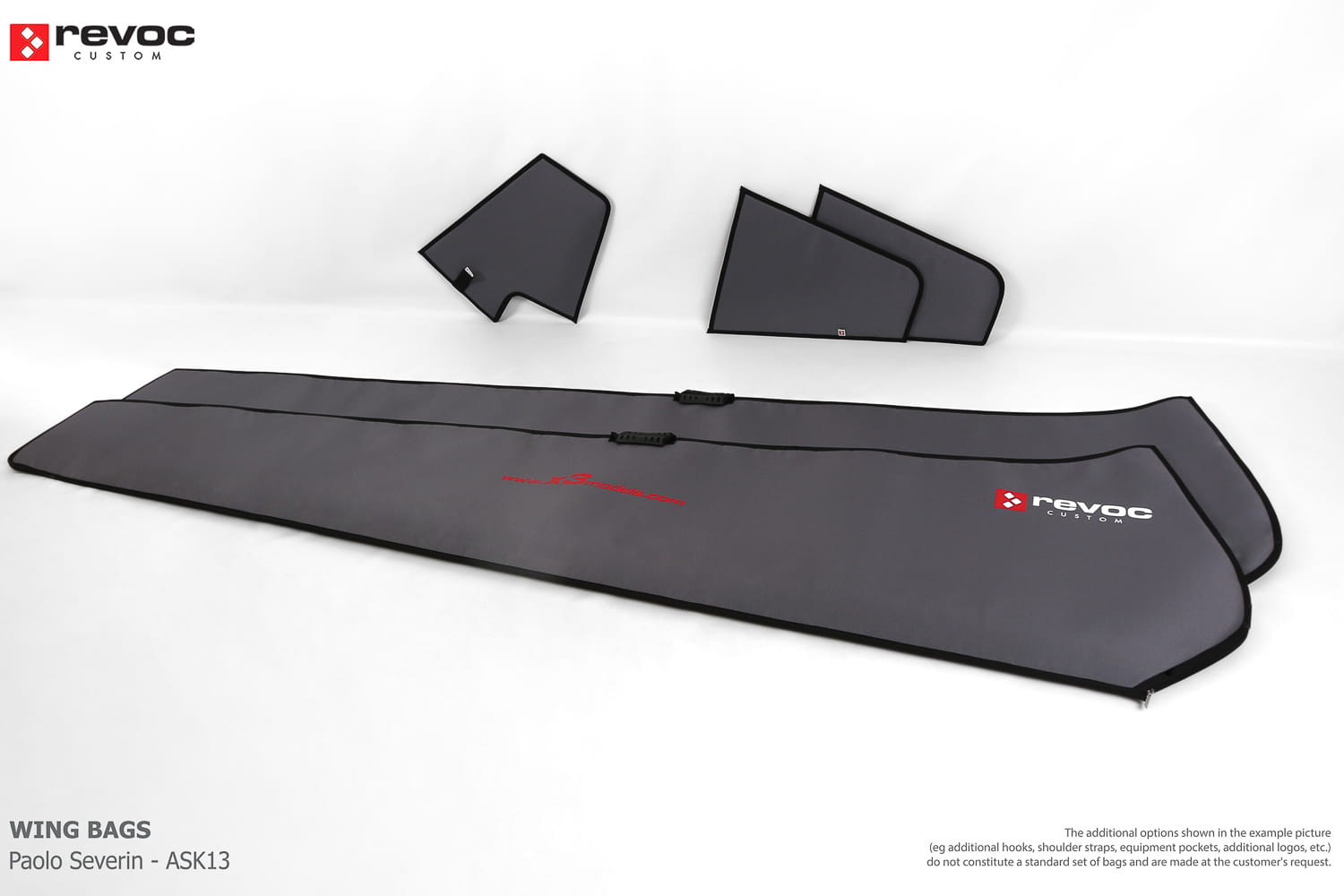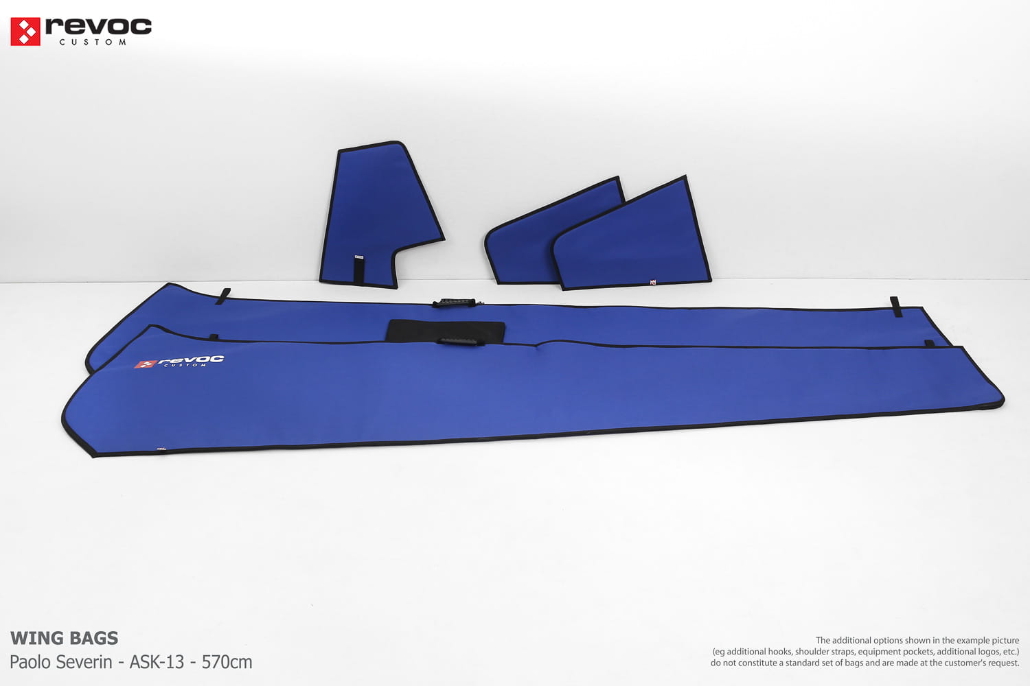 We make bags especially for you on your individual order. You can decide on the colors, choose a logo, put the model name on the cover, additional markings or choose a number of useful additional options. The custom color scheme which is a detailed reproduction of the model's painting can be ordered individually - contact us for the offer: revoc@revoc.eu