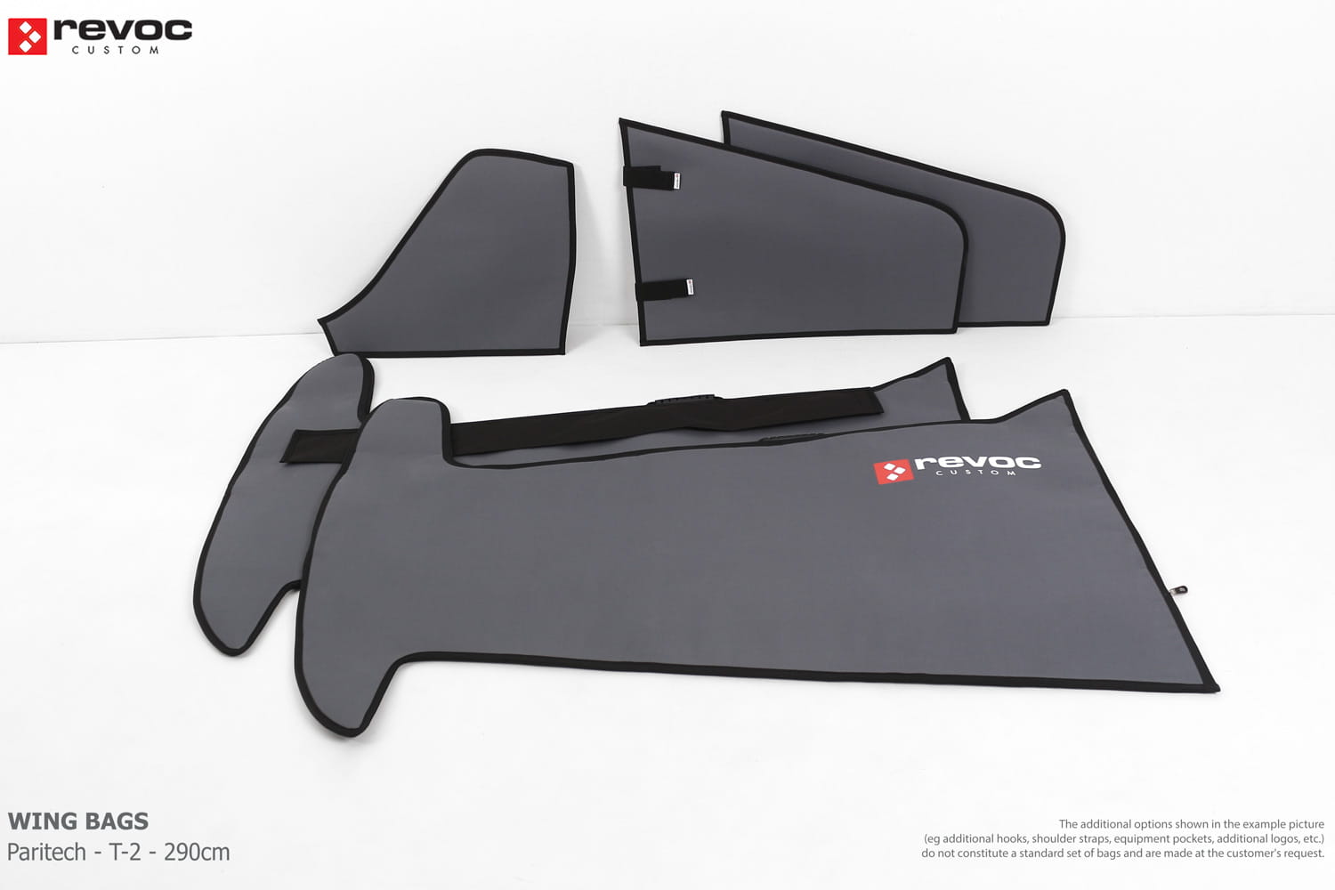We create custom wing bags especially for you based on your individual order. You can select the colors, add a logo, include the model name on the cover, or choose additional markings and useful options.
