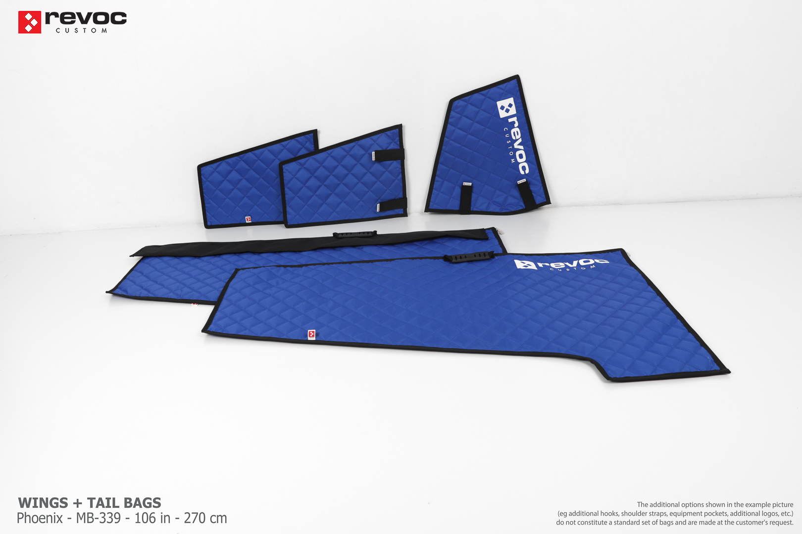 We create custom wing bags especially for you based on your individual order. You can select the colors, add a logo, include the model name on the cover, or choose additional markings and useful options.
