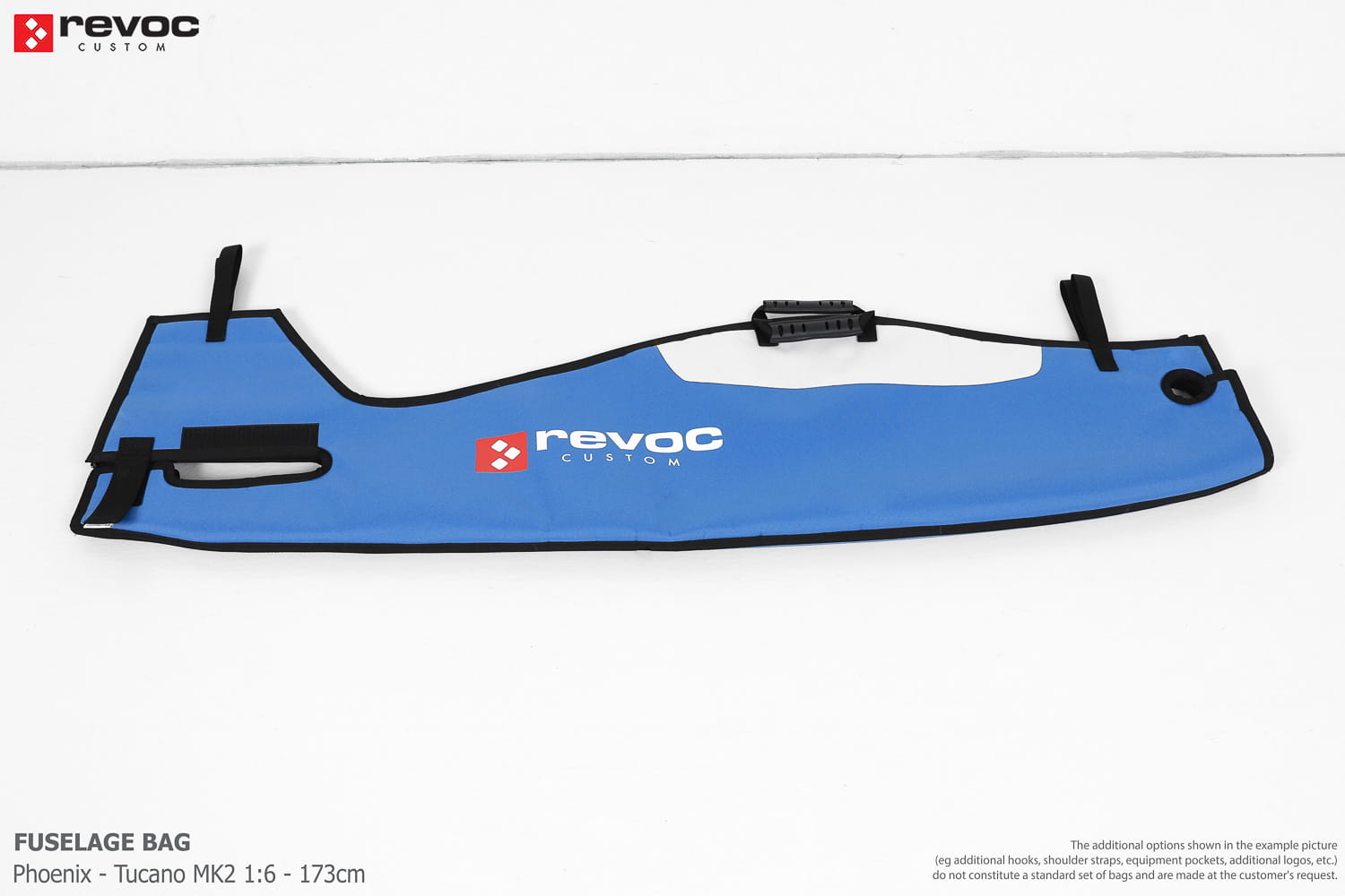 We make bags especially for you on your individual order. You can decide on the colors, choose a logo, put the model name on the cover, additional markings or choose a number of useful additional options. The custom color scheme which is a detailed reproduction of the models painting can be ordered individually - contact us for the offer: revoc@revoc.eu