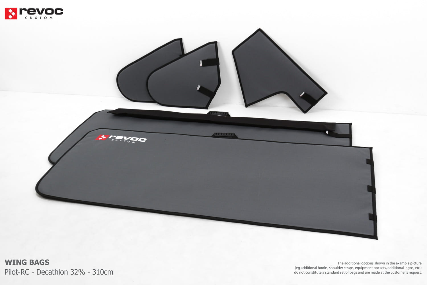 We make bags especially for you on your individual order. You can decide on the colors, choose a logo, put the model name on the cover, additional markings or choose a number of useful additional options. The custom color scheme which is a detailed reproduction of the model's painting can be ordered individually - contact us for the offer: revoc@revoc.eu