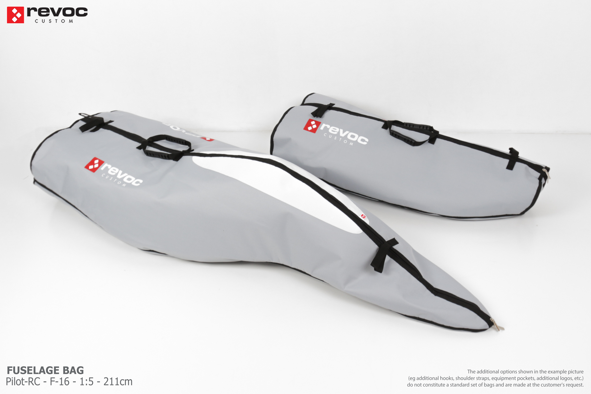 All REVOC bags are made especially for your model. They are completely tailored to the specific structure of your aircraft - regardless of whether it is a JET model, aerobatic model, glider or bi-plane model. Bags are made according to your comments, individual parameters and wishes. Please write your additional comments and wishes in the COMMENT section or send them directly to the e-mail revoc@revoc.eu after placing the order.