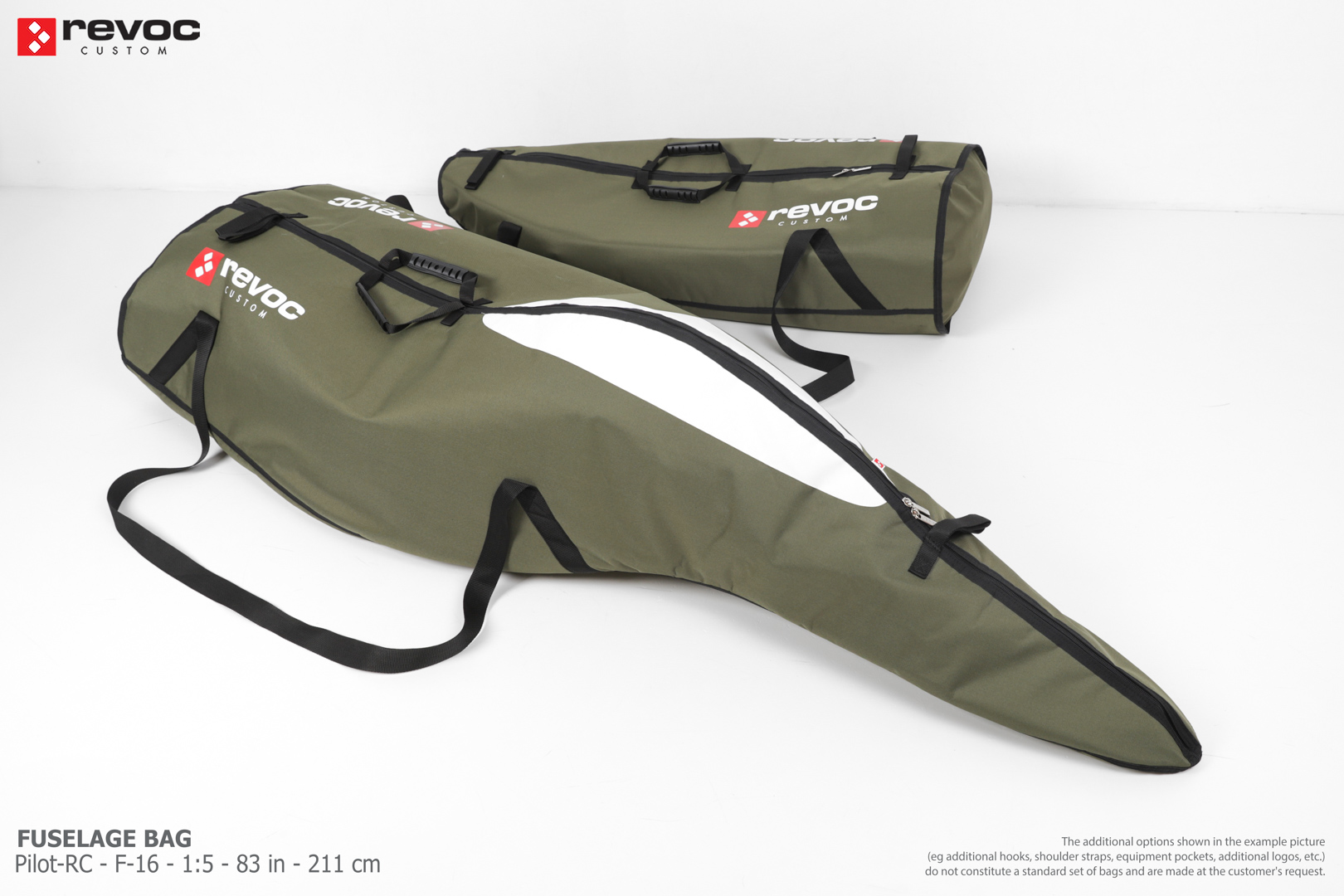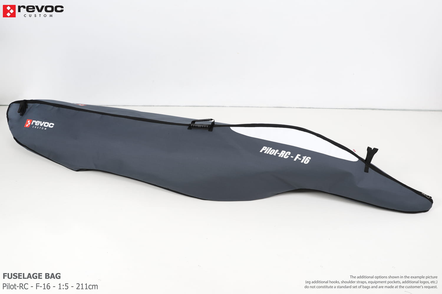 We make bags especially for you on your individual order. You can decide on the colors, choose a logo, put the model name on the cover, additional markings or choose a number of useful additional options. The custom color scheme which is a detailed reproduction of the models painting can be ordered individually - contact us for the offer: revoc@revoc.eu