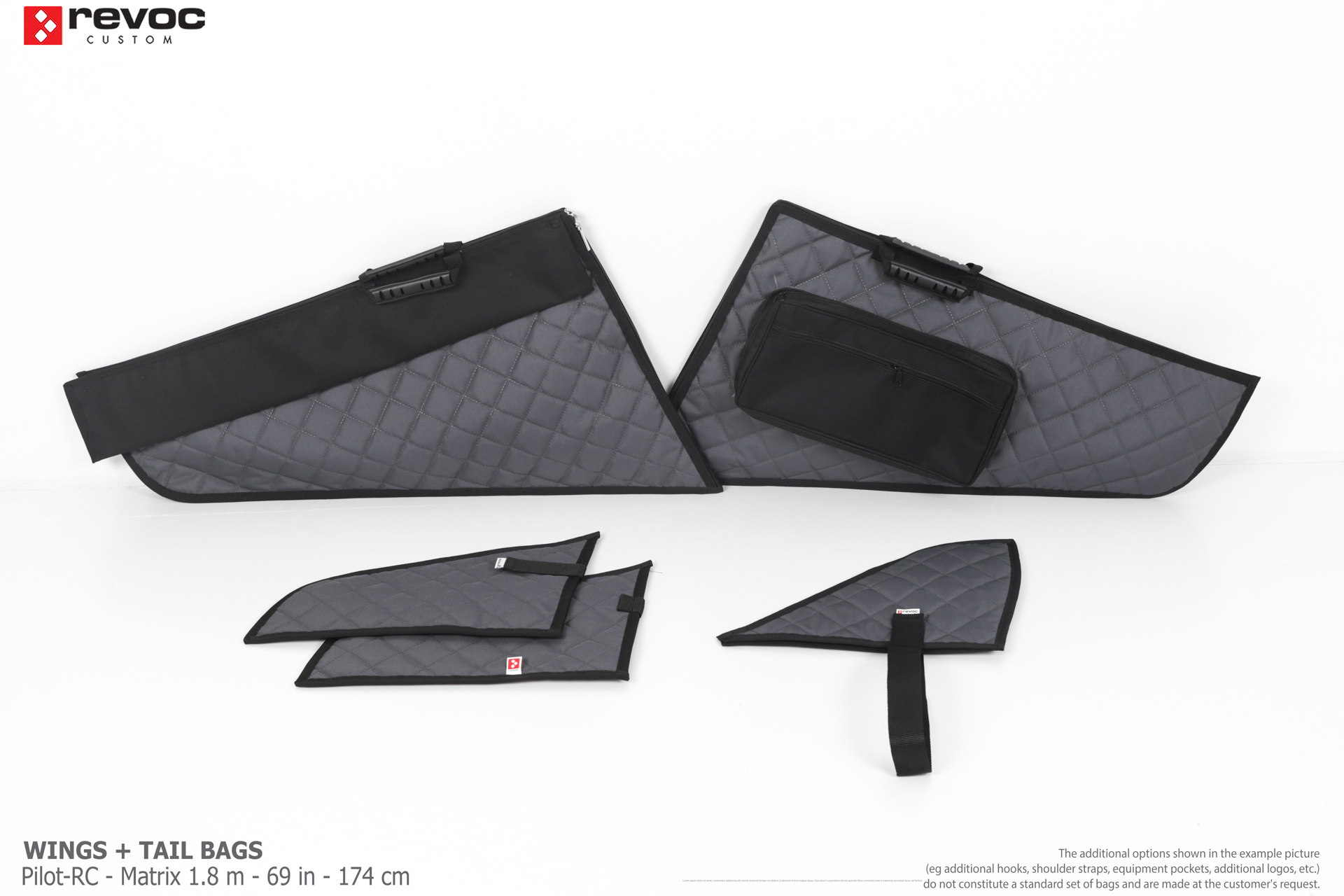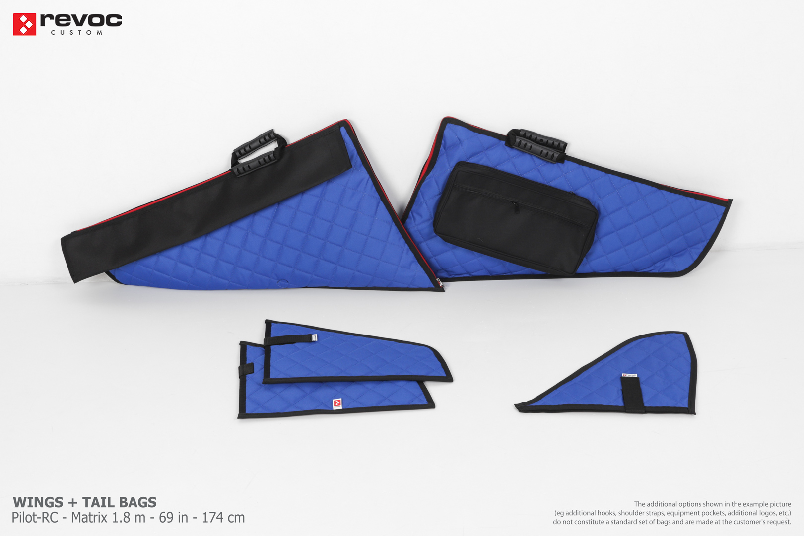 We create custom wing bags especially for you based on your individual order. You can select the colors, add a logo, include the model name on the cover, or choose additional markings and useful options.