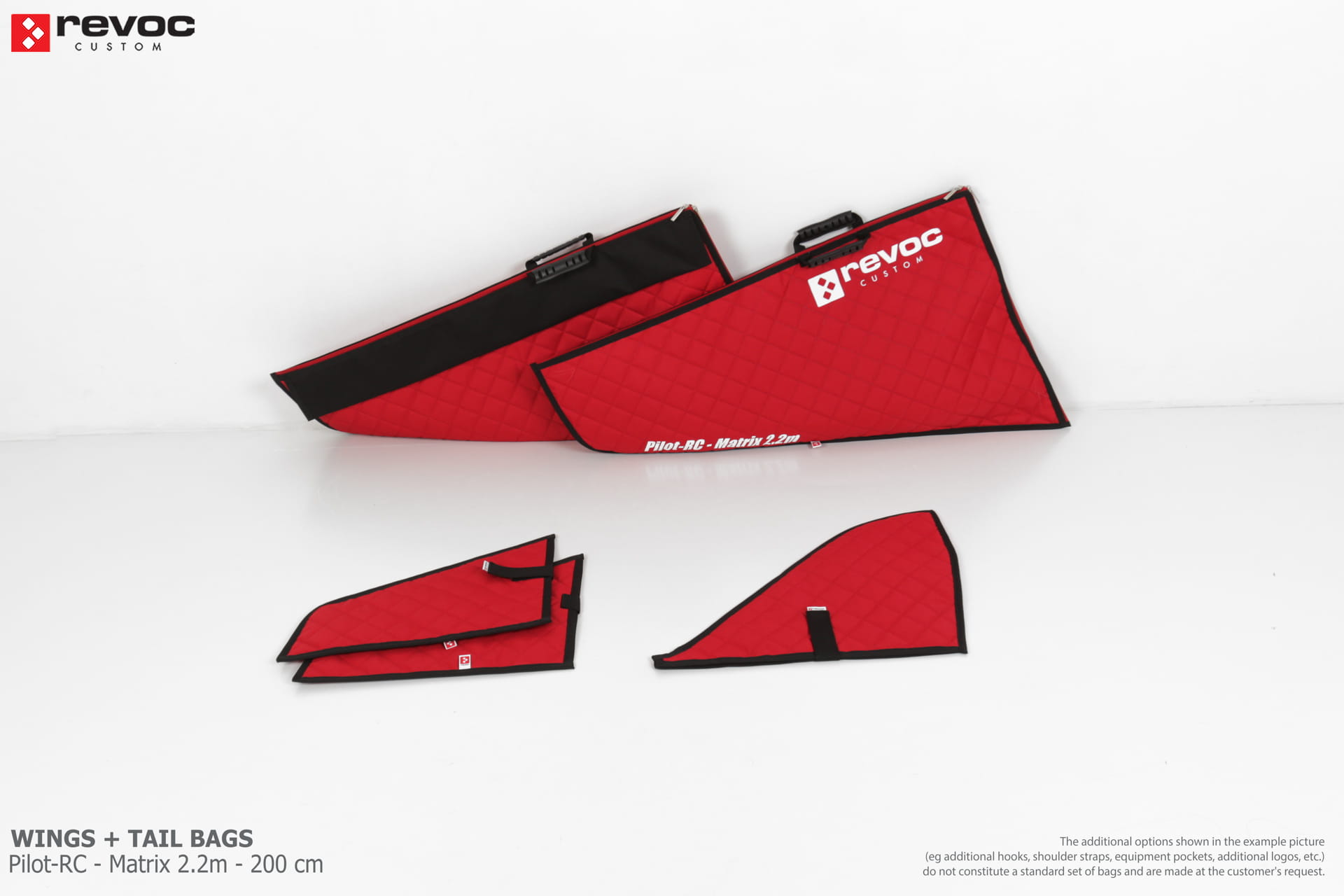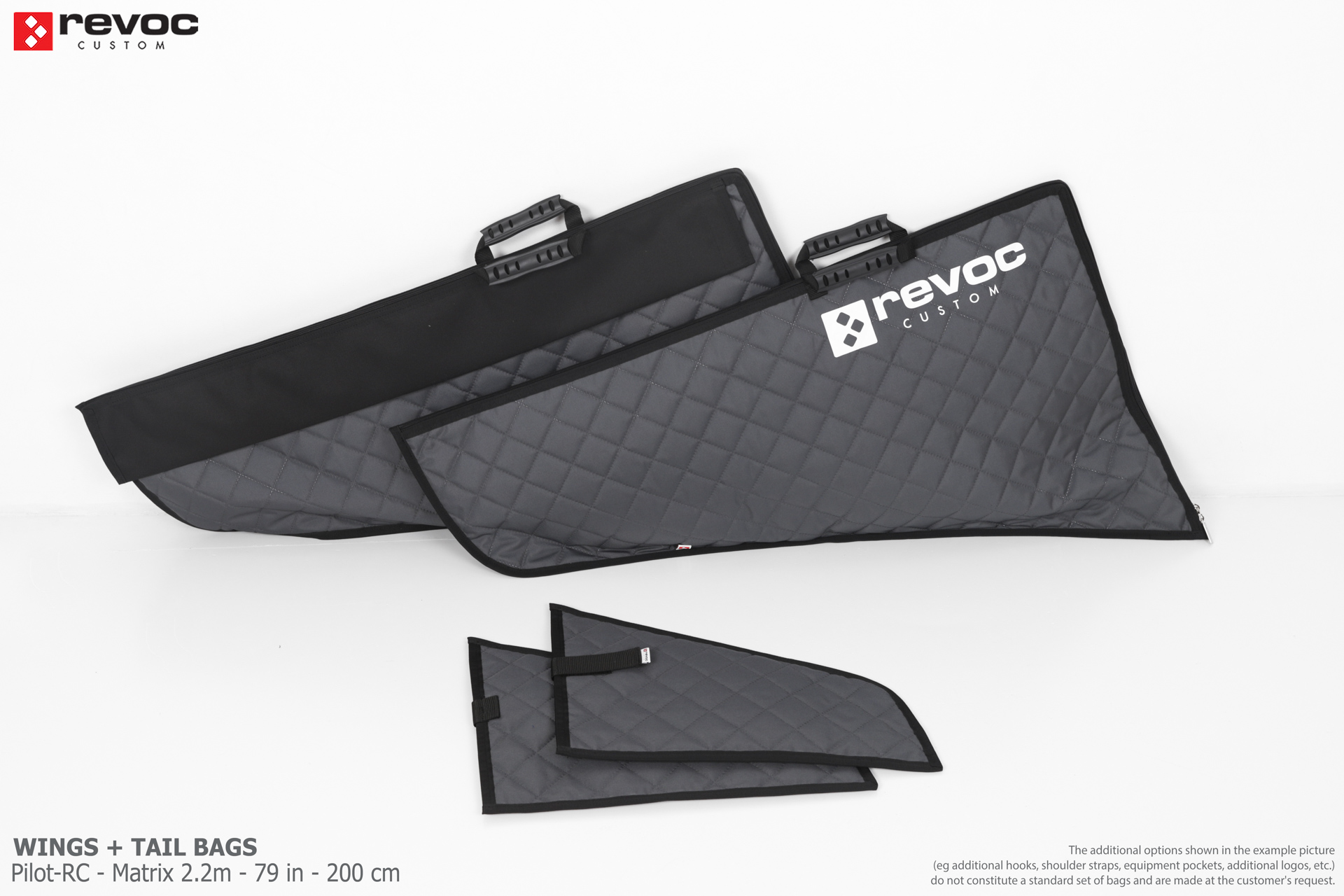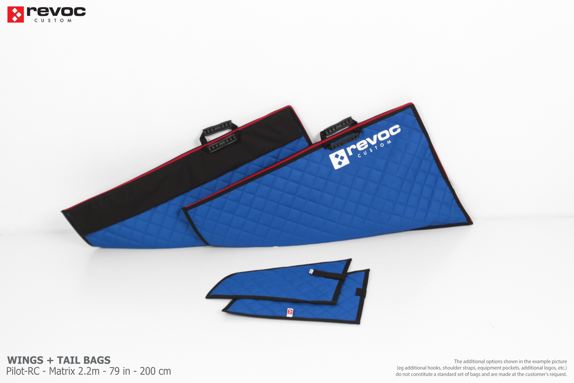 All REVOC RC bags are custom-made specifically for your model. Whether you have a jet, aerobatic aircraft RC, glider, or bi-plane RC model, our wing bags are completely tailored to fit the unique structure of your remote control planes. Each wing bag is crafted according to your individual preferences, parameters, and special requests. Please include any additional comments or wishes in the COMMENT section when placing your order, or email them directly to revoc@revoc.eu for a fully personalized wing bag RC experience.