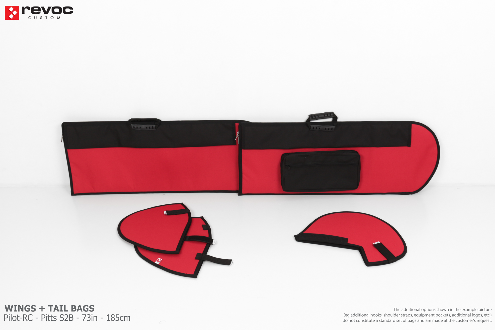 All REVOC RC bags are custom-made specifically for your model. Whether you have a jet, aerobatic aircraft RC, glider, or bi-plane RC model, our wing bags are completely tailored to fit the unique structure of your remote control planes. Each wing bag is crafted according to your individual preferences, parameters, and special requests. Please include any additional comments or wishes in the COMMENT section when placing your order, or email them directly to revoc@revoc.eu for a fully personalized wing bag RC experience.
