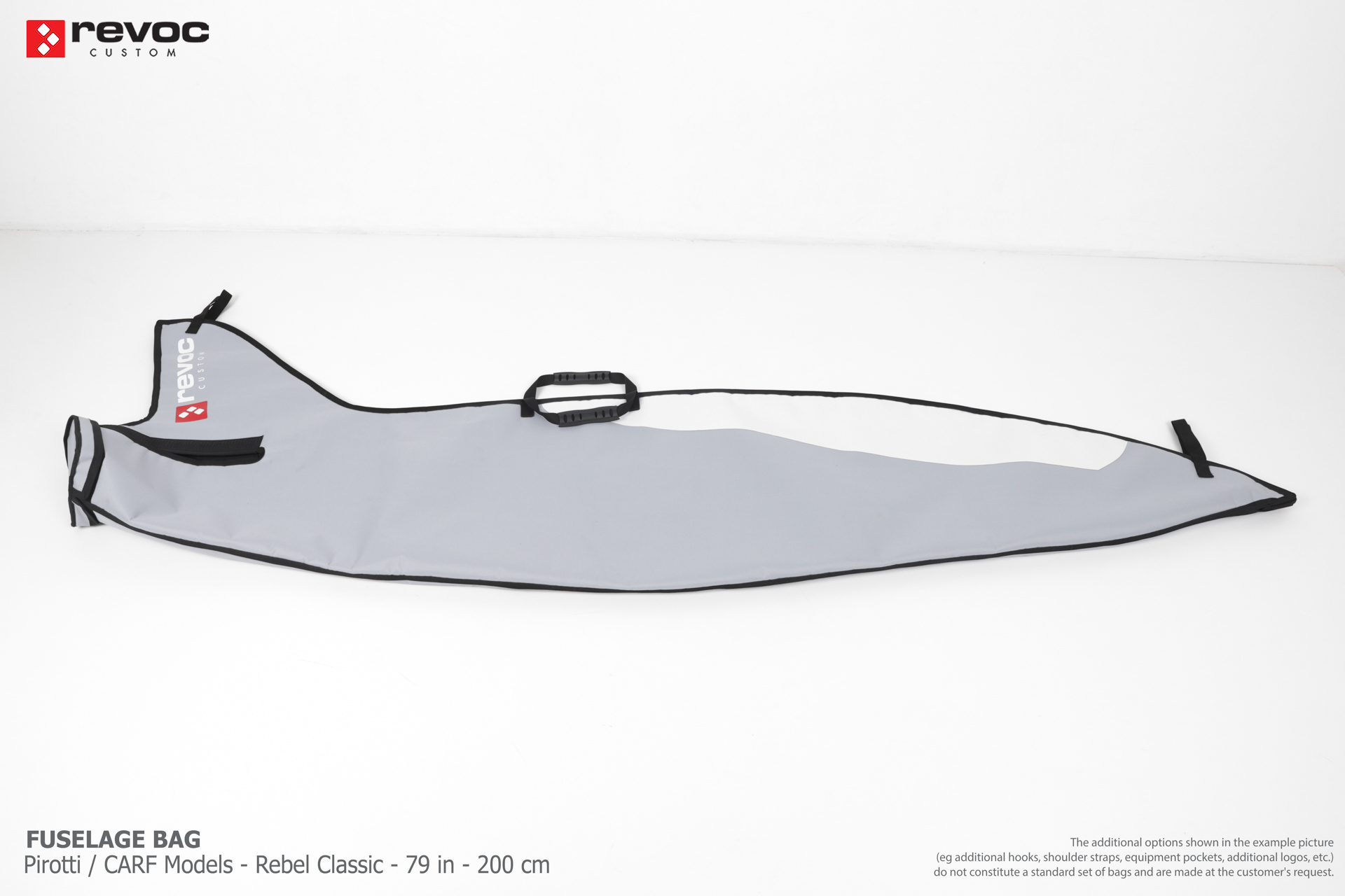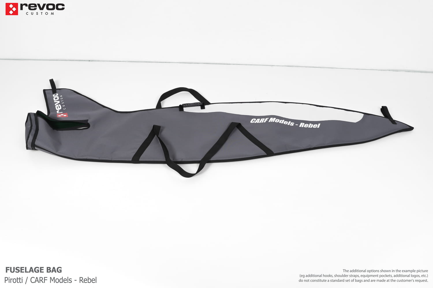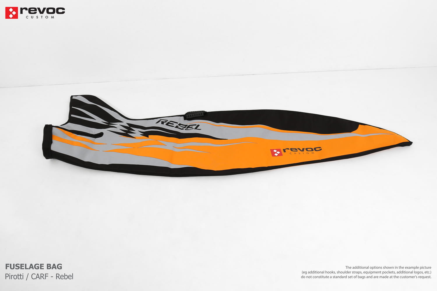 We make bags especially for you on your individual order. You can decide on the colors, choose a logo, put the model name on the cover, additional markings or choose a number of useful additional options. The custom color scheme which is a detailed reproduction of the models painting can be ordered individually - contact us for the offer: revoc@revoc.eu