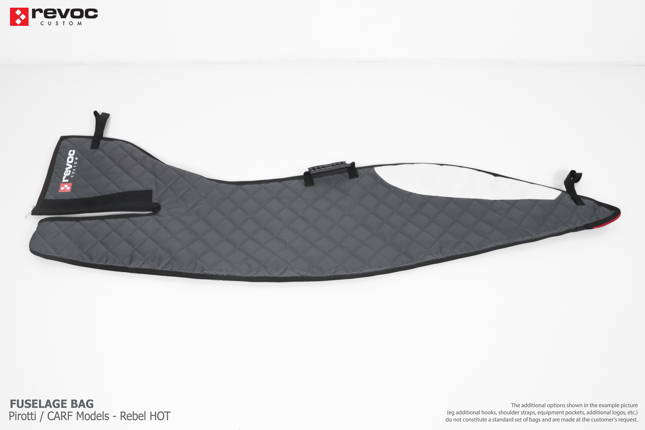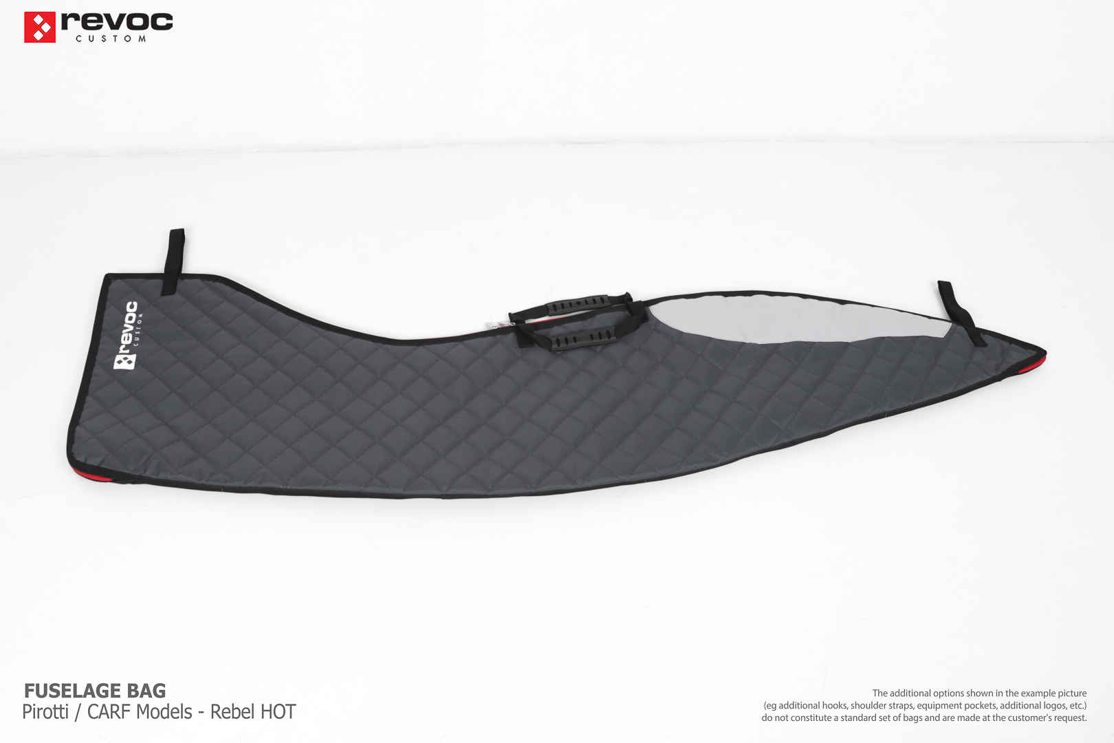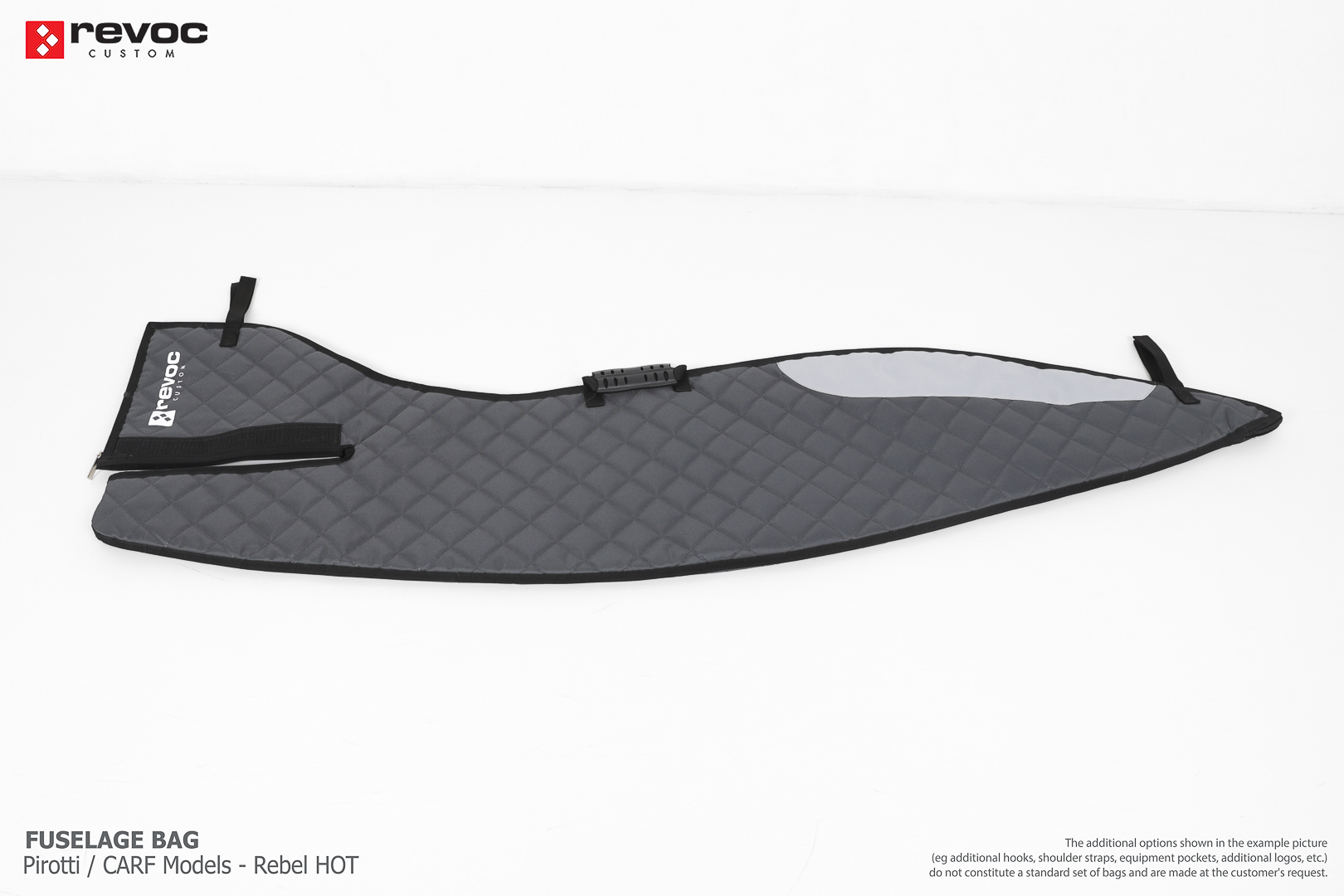 All REVOC RC bags are custom-made specifically for your model. Whether you have a jet, aerobatic aircraft RC, glider, or bi-plane RC model, our wing bags are completely tailored to fit the unique structure of your remote control planes. Each wing bag is crafted according to your individual preferences, parameters, and special requests. Please include any additional comments or wishes in the COMMENT section when placing your order, or email them directly to revoc@revoc.eu for a fully personalized wing bag RC experience.