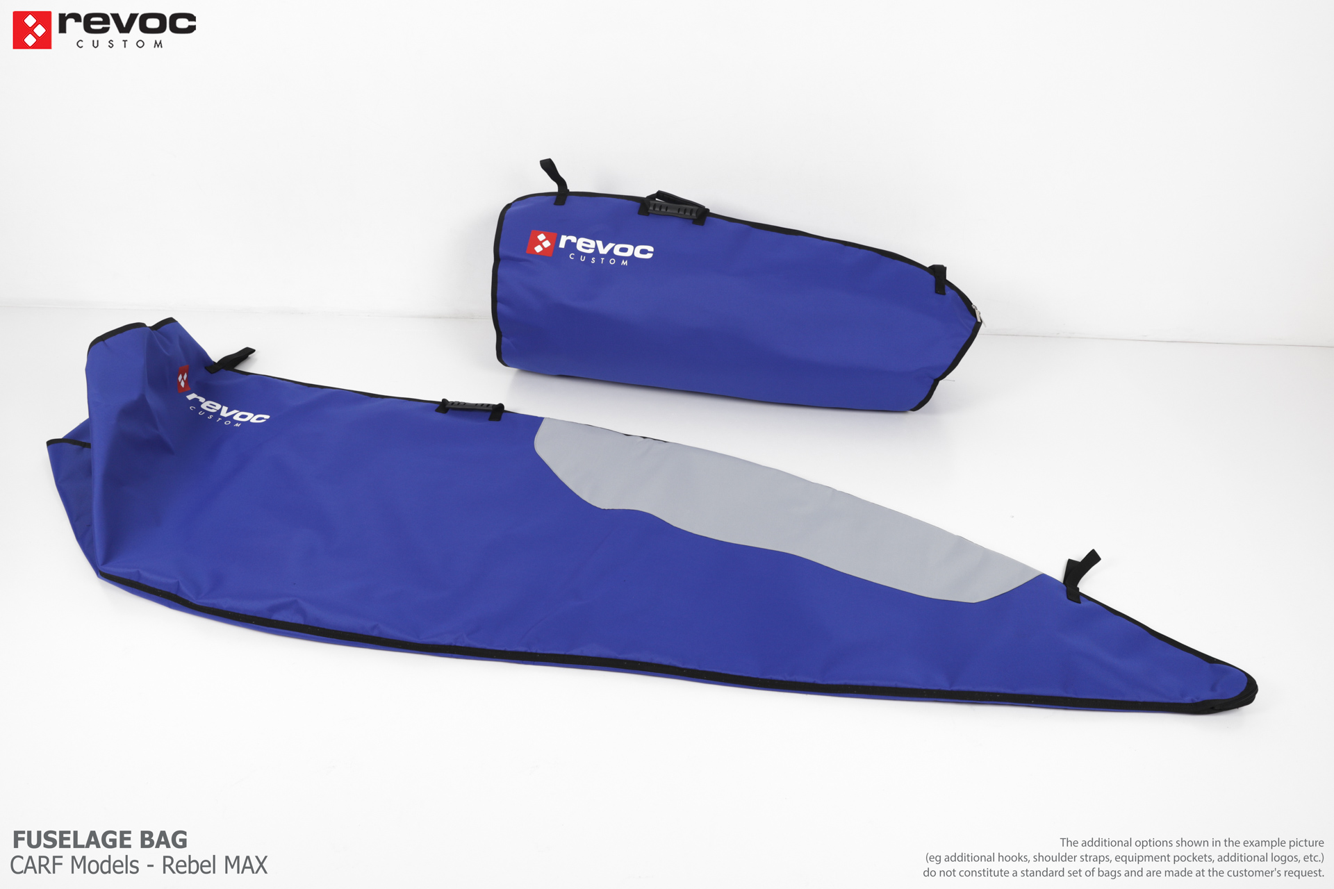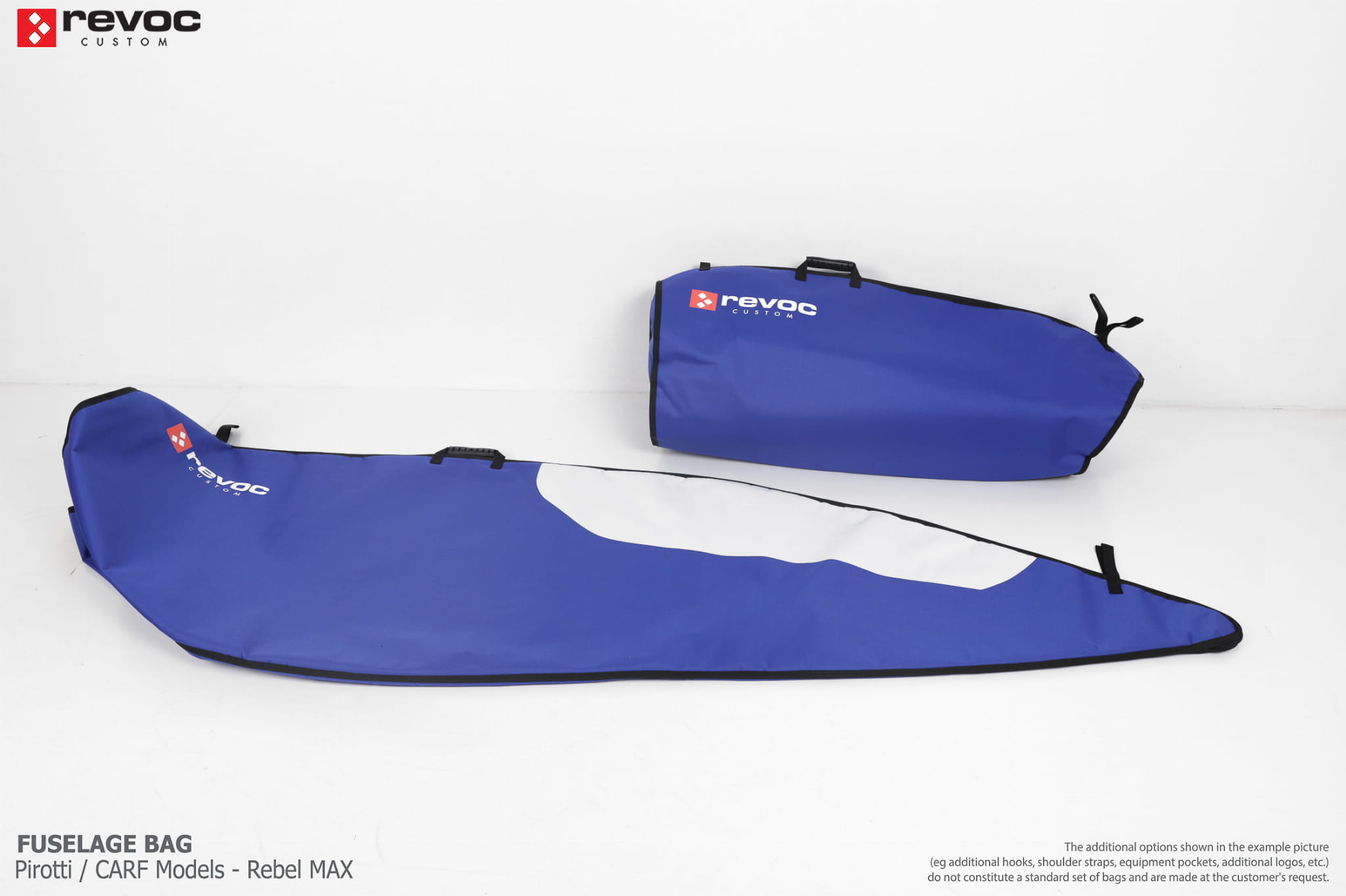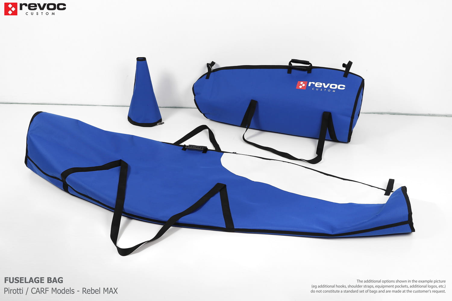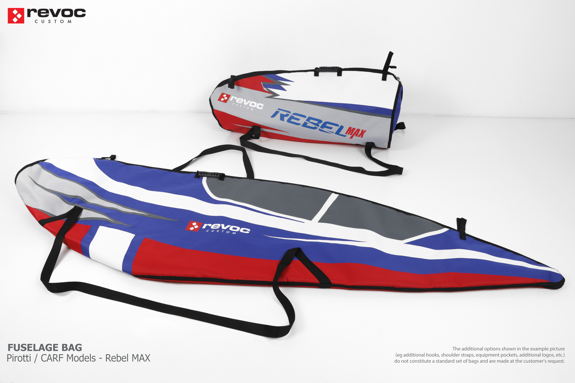 We make bags especially for you on your individual order. You can decide on the colors, choose a logo, put the model name on the cover, additional markings or choose a number of useful additional options. The custom color scheme which is a detailed reproduction of the models painting can be ordered individually - contact us for the offer: revoc@revoc.eu