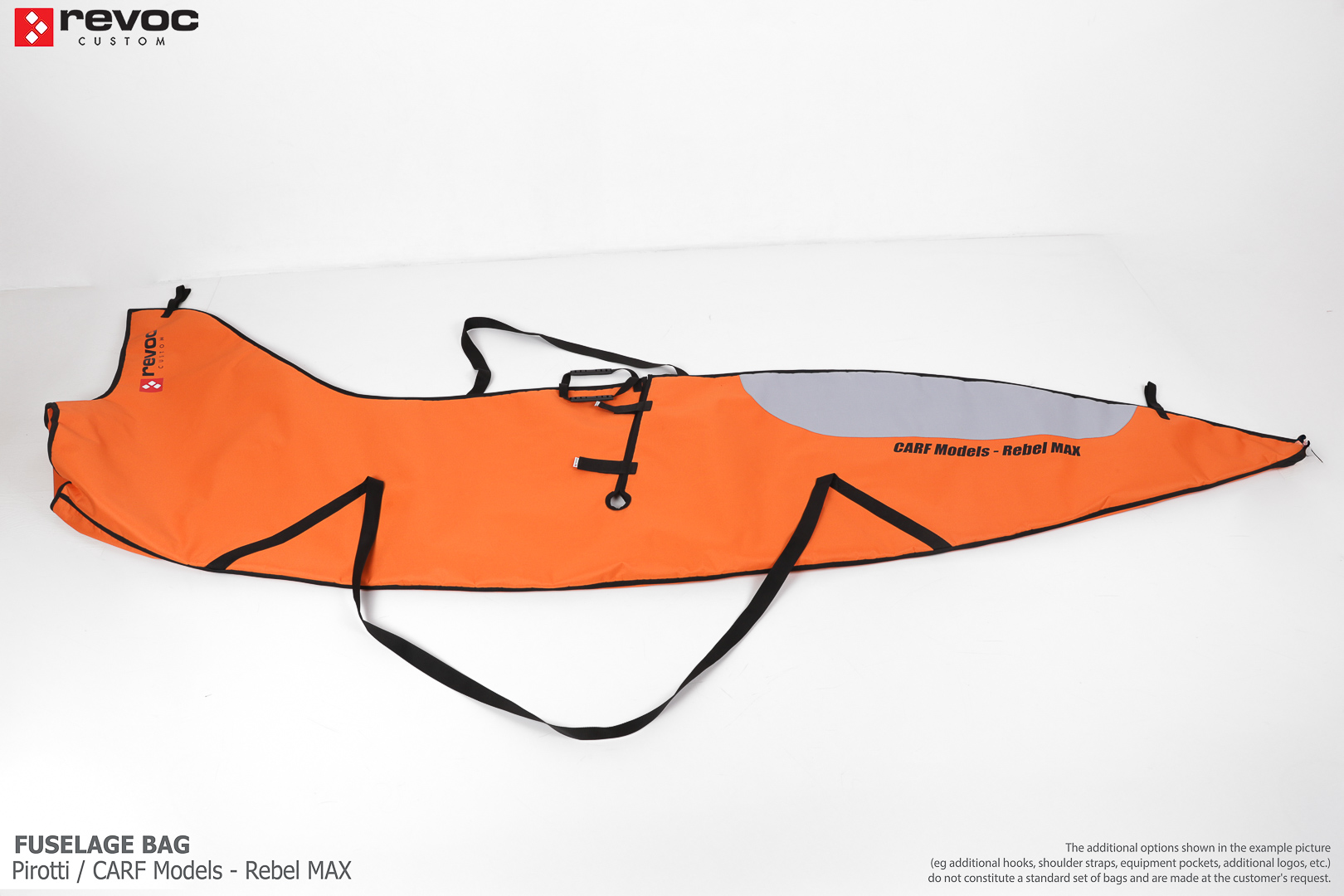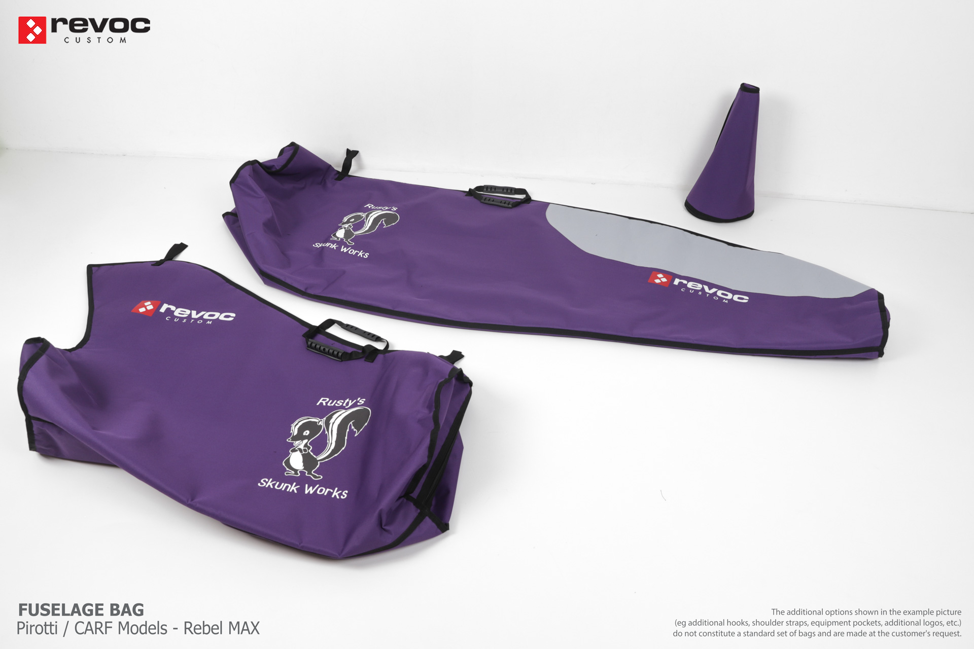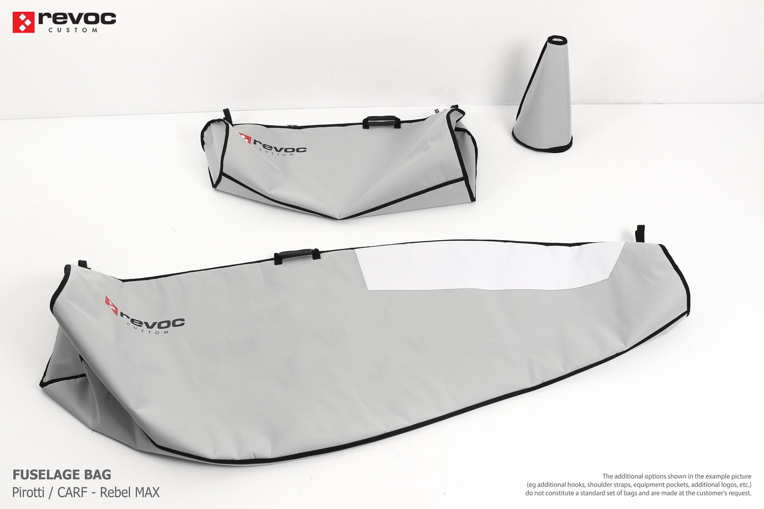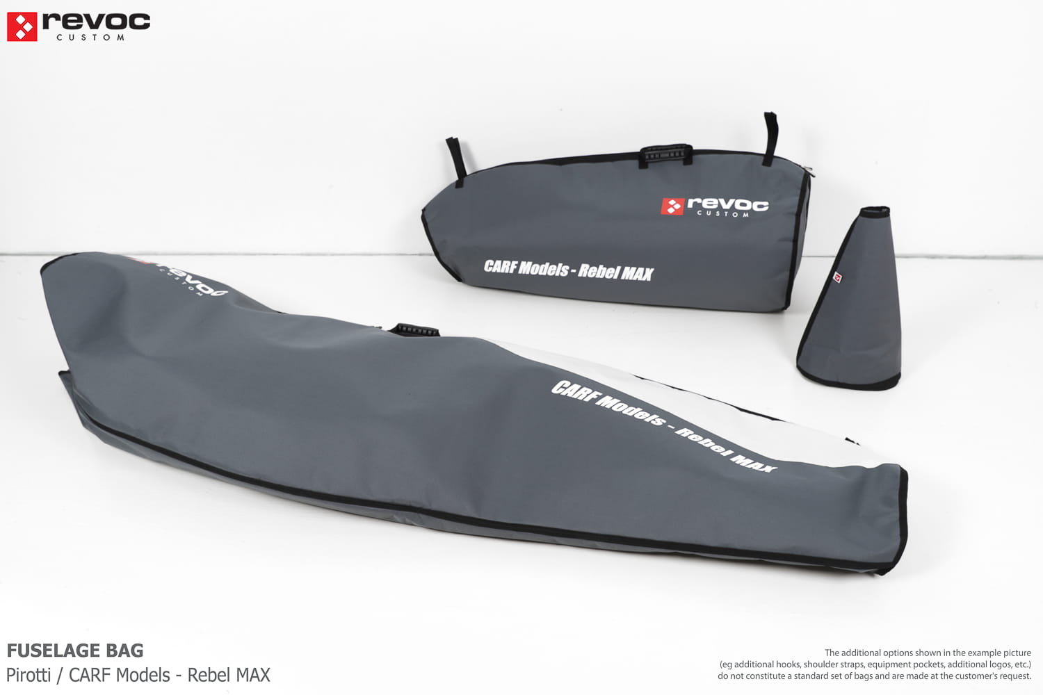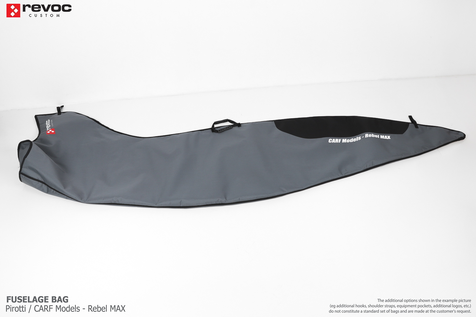 We make bags especially for you on your individual order. You can decide on the colors, choose a logo, put the model name on the cover, additional markings or choose a number of useful additional options. The custom color scheme which is a detailed reproduction of the models painting can be ordered individually - contact us for the offer: revoc@revoc.eu