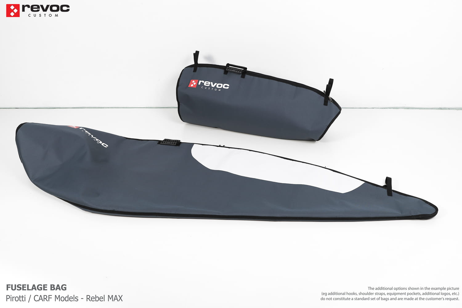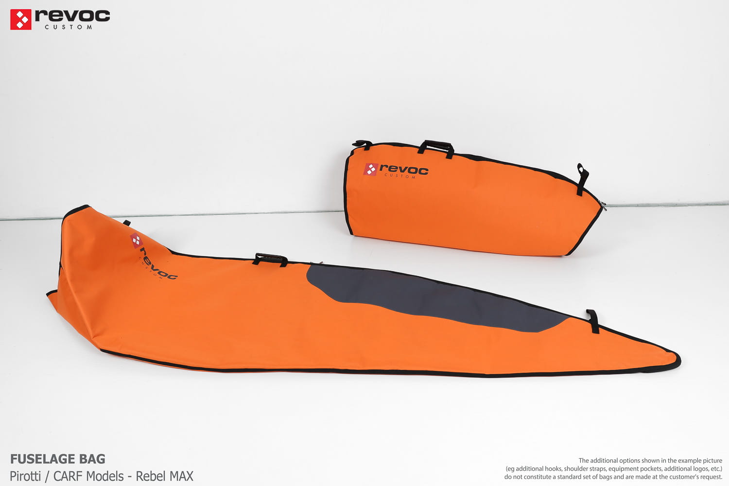 All REVOC bags are made especially for your model. They are completely tailored to the specific structure of your aircraft - regardless of whether it is a JET model, aerobatic model, glider or bi-plane model. Bags are made according to your comments, individual parameters and wishes. Please write your additional comments and wishes in the COMMENT section or send them directly to the e-mail revoc@revoc.eu after placing the order.