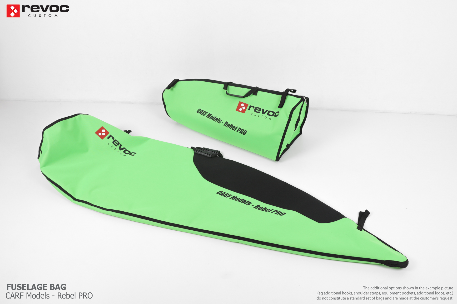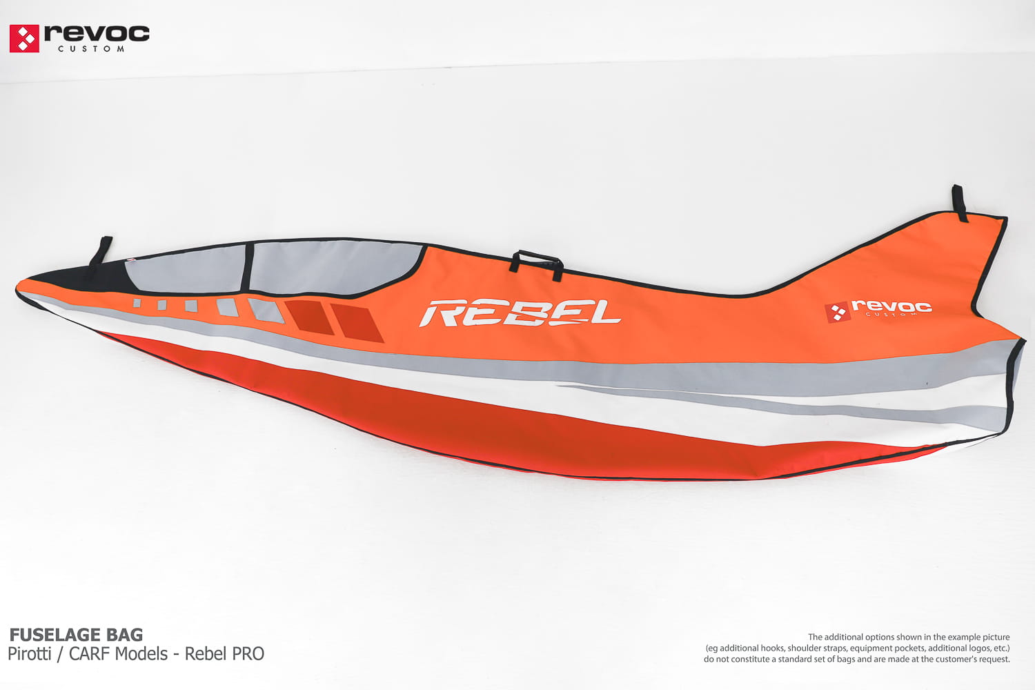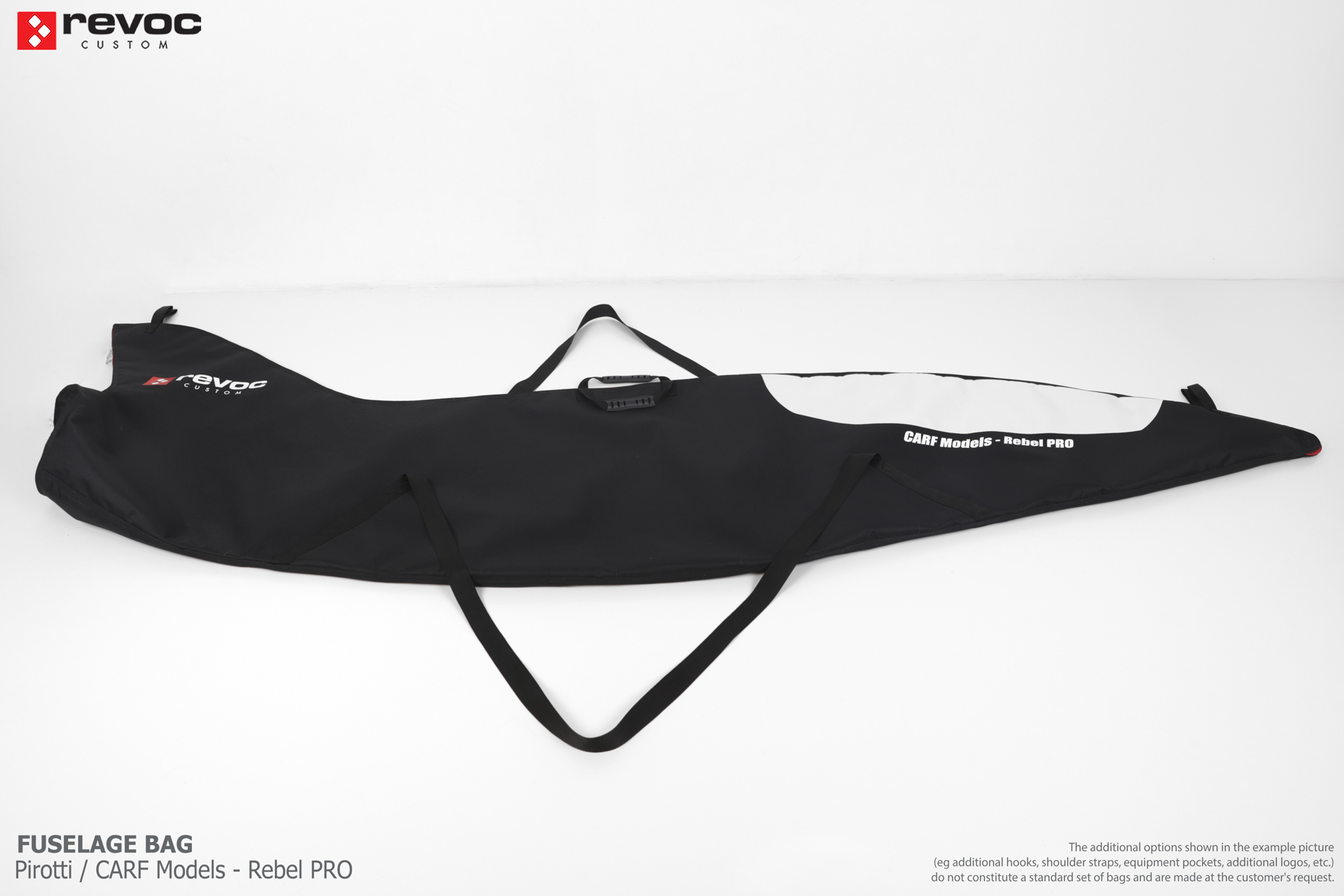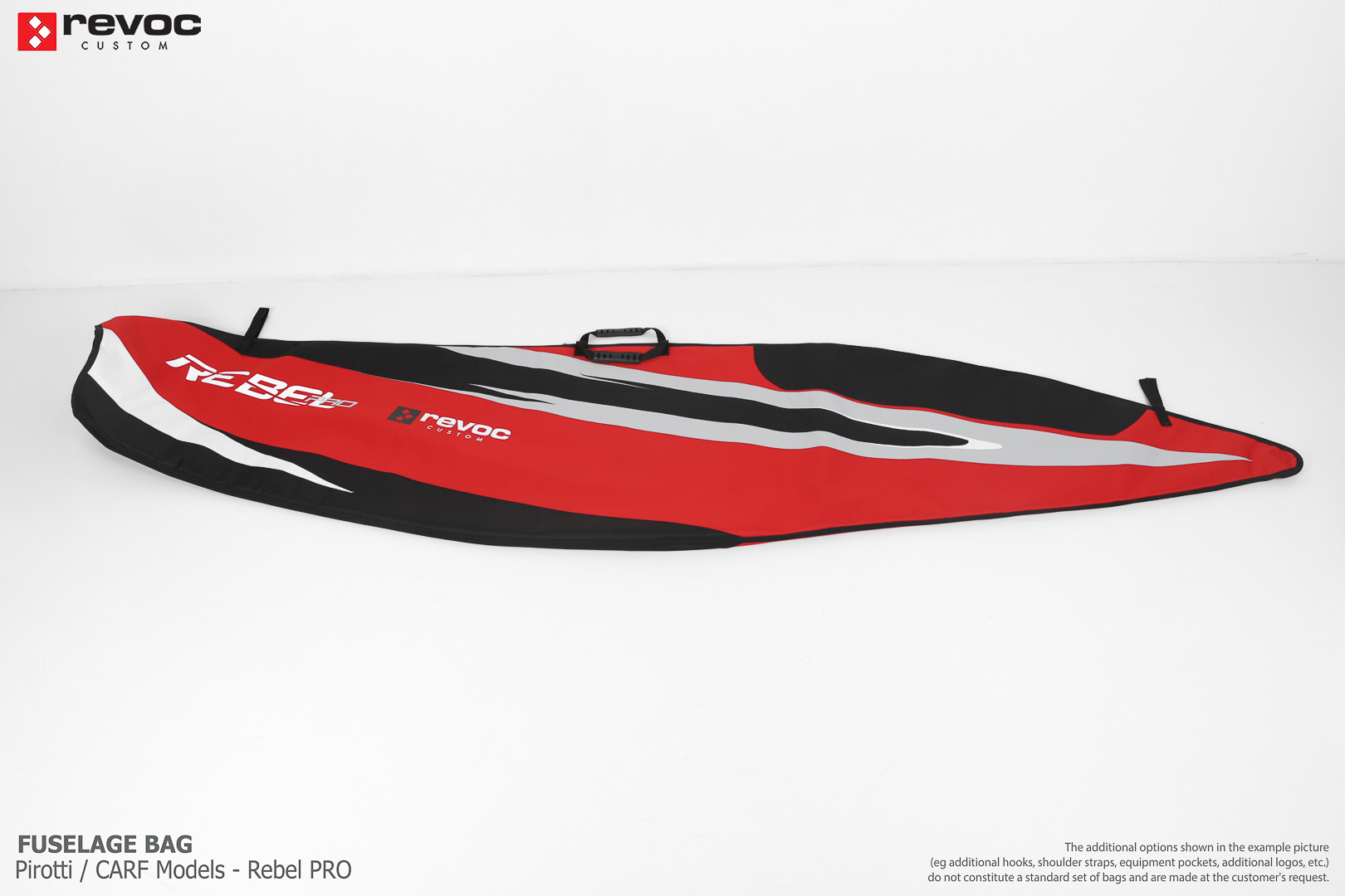 We make bags especially for you on your individual order. You can decide on the colors, choose a logo, put the model name on the cover, additional markings or choose a number of useful additional options. The custom color scheme which is a detailed reproduction of the models painting can be ordered individually - contact us for the offer: revoc@revoc.eu