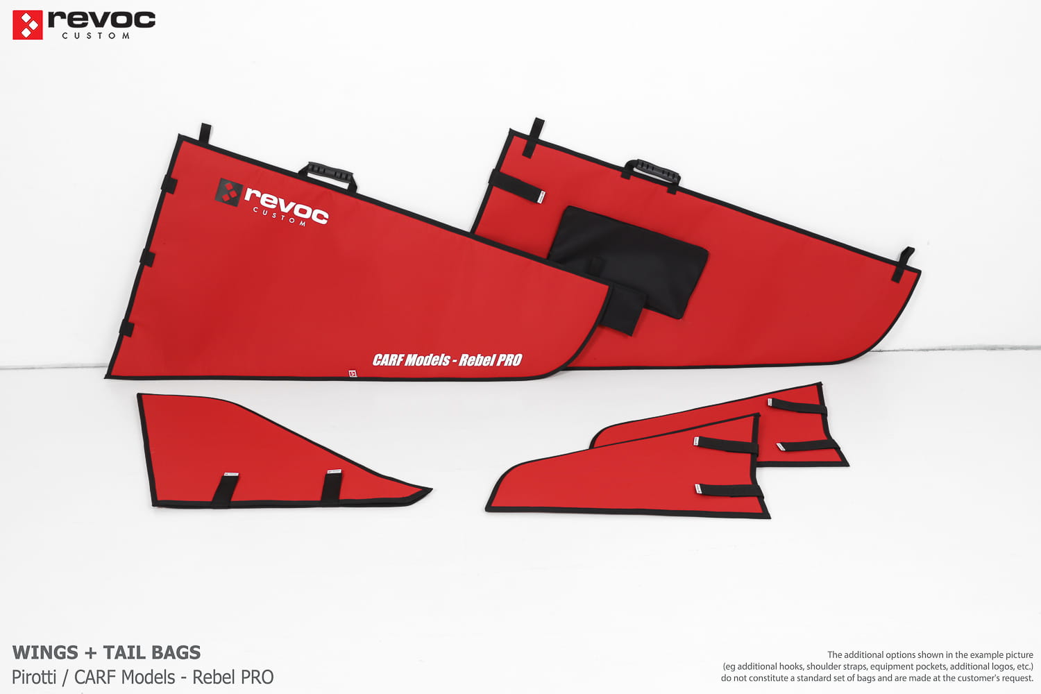 We make bags especially for you on your individual order. You can decide on the colors, choose a logo, put the model name on the cover, additional markings or choose a number of useful additional options. The custom color scheme which is a detailed reproduction of the model's painting can be ordered individually - contact us for the offer: revoc@revoc.eu
