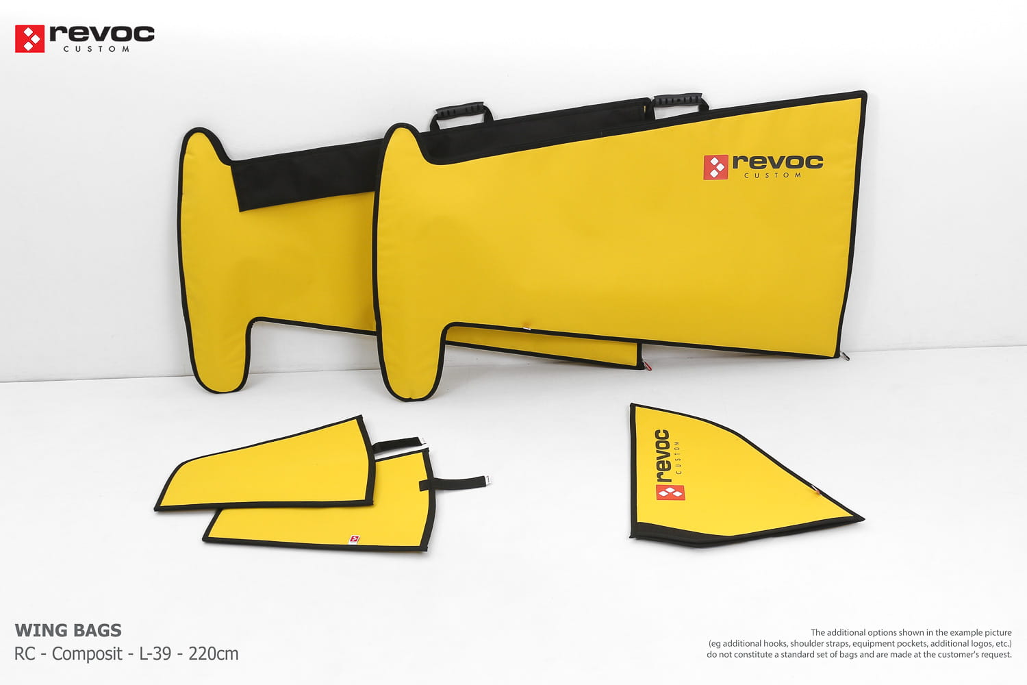 All REVOC RC bags are custom-made specifically for your model. Whether you have a jet, aerobatic aircraft RC, glider, or bi-plane RC model, our wing bags are completely tailored to fit the unique structure of your remote control planes. Each wing bag is crafted according to your individual preferences, parameters, and special requests. Please include any additional comments or wishes in the COMMENT section when placing your order, or email them directly to revoc@revoc.eu for a fully personalized wing bag RC experience.