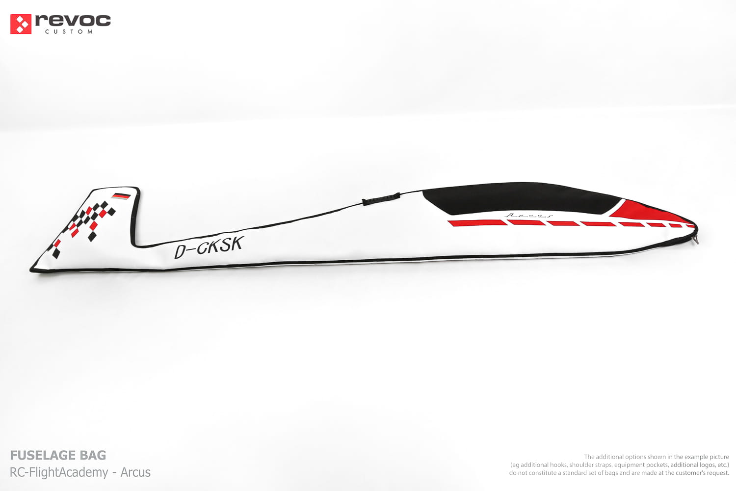 We make bags especially for you on your individual order. You can decide on the colors, choose a logo, put the model name on the cover, additional markings or choose a number of useful additional options. The custom color scheme which is a detailed reproduction of the models painting can be ordered individually - contact us for the offer: revoc@revoc.eu