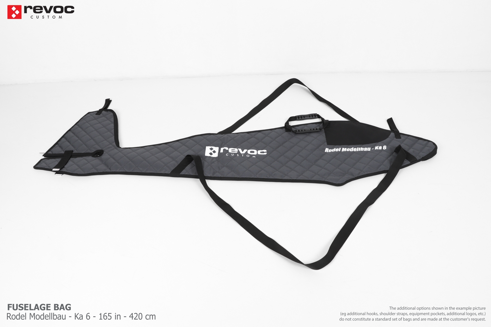 All REVOC bags are made especially for your model. They are completely tailored to the specific structure of your aircraft - regardless of whether it is a JET model, aerobatic model, glider or bi-plane model. Bags are made according to your comments, individual parameters and wishes. Please write your additional comments and wishes in the COMMENT section or send them directly to the e-mail revoc@revoc.eu after placing the order.