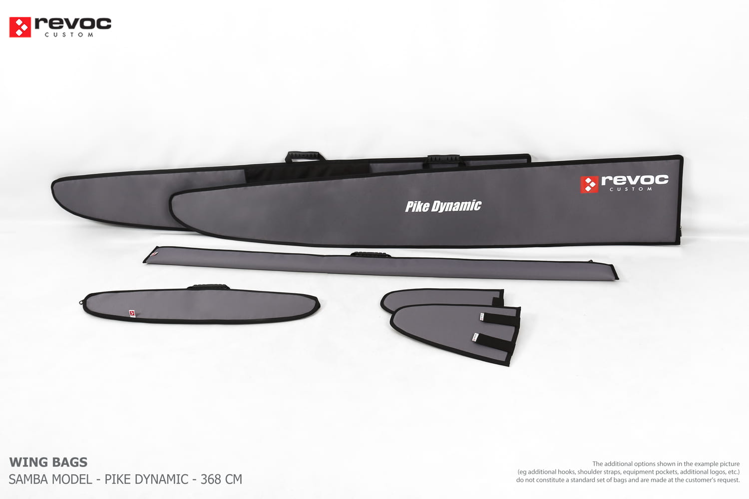 We create custom wing bags especially for you based on your individual order. You can select the colors, add a logo, include the model name on the cover, or choose additional markings and useful options.