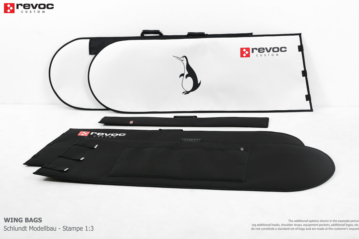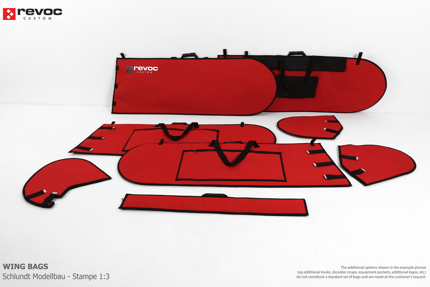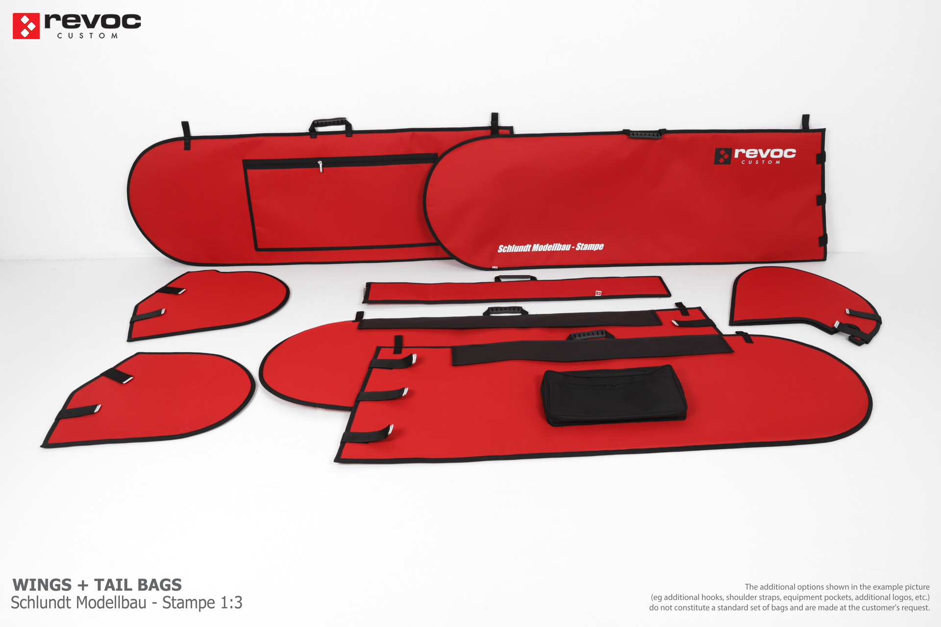We make bags especially for you on your individual order. You can decide on the colors, choose a logo, put the model name on the cover, additional markings or choose a number of useful additional options. The custom color scheme which is a detailed reproduction of the model's painting can be ordered individually - contact us for the offer: revoc@revoc.eu