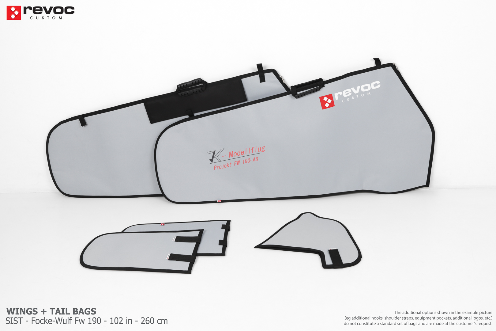 All REVOC bags are made especially for your model. They are completely tailored to the specific structure of your aircraft - regardless of whether it is a JET model, aerobatic model, glider or bi-plane model. Bags are made according to your comments, individual parameters and wishes. Please write your additional comments and wishes in the COMMENT section or send them directly to the e-mail revoc@revoc.eu after placing the order.