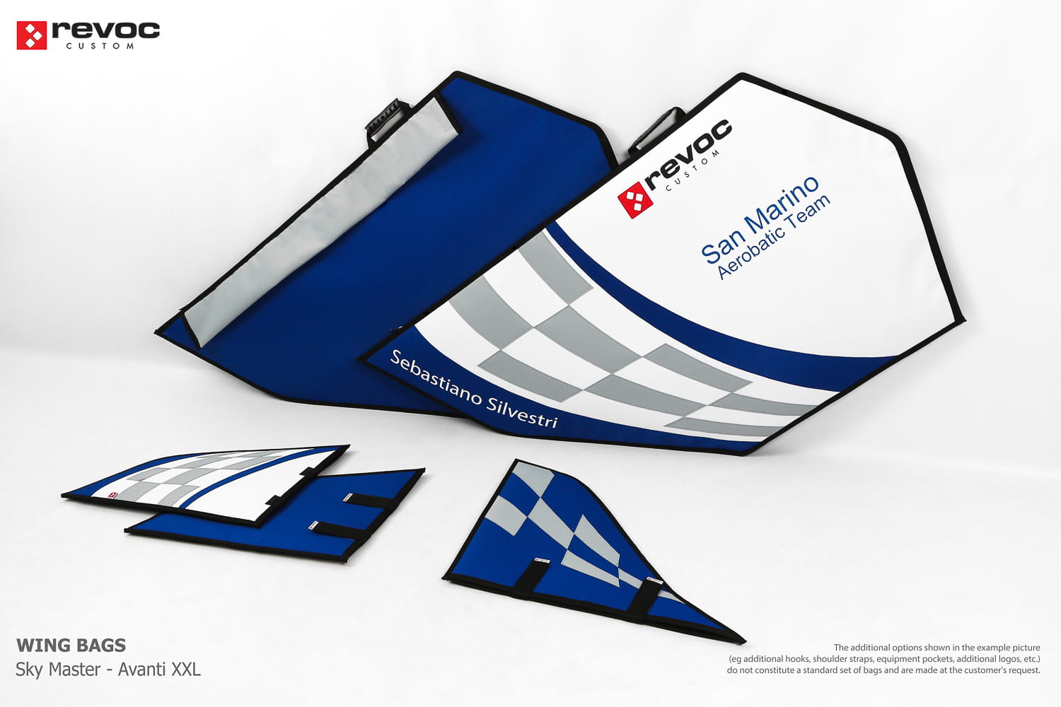 We make bags especially for you on your individual order. You can decide on the colors, choose a logo, put the model name on the cover, additional markings or choose a number of useful additional options. The custom color scheme which is a detailed reproduction of the model's painting can be ordered individually - contact us for the offer: revoc@revoc.eu