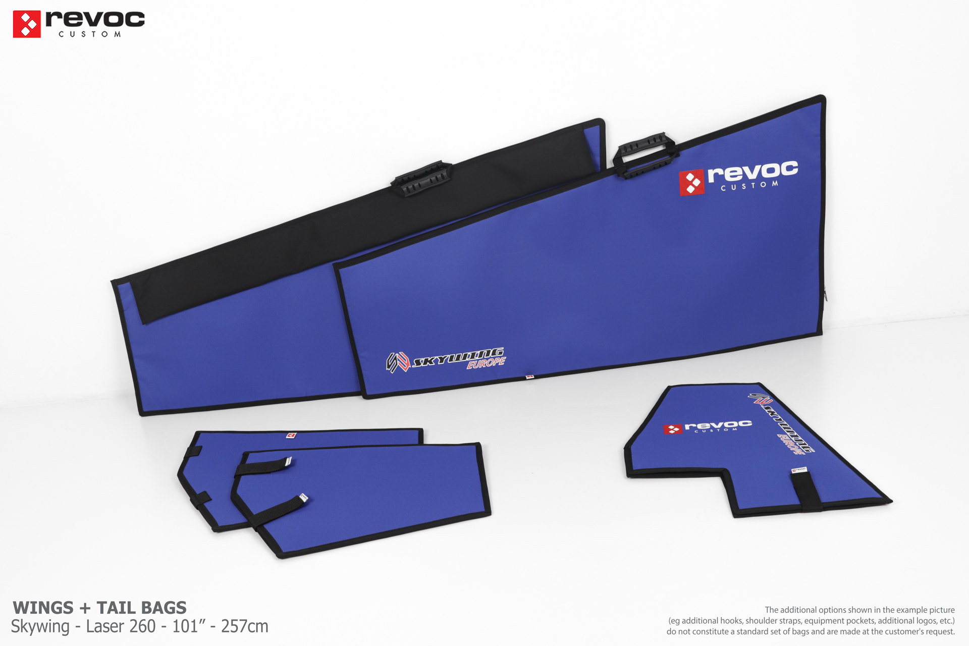 We create custom wing bags especially for you based on your individual order. You can select the colors, add a logo, include the model name on the cover, or choose additional markings and useful options.