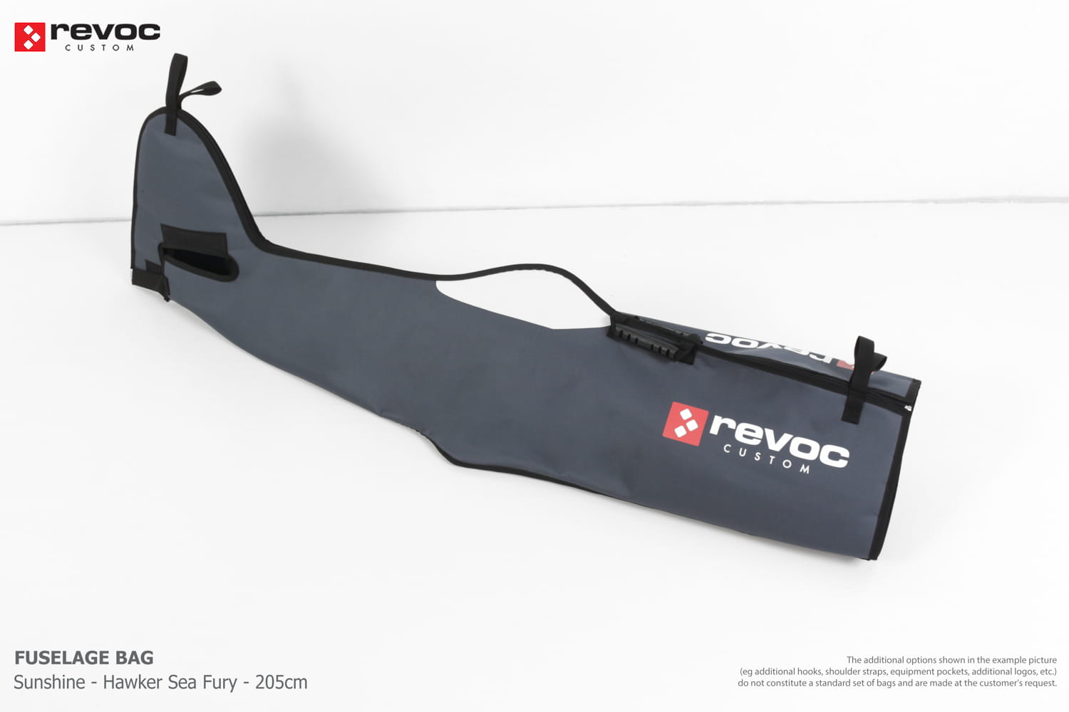 We make bags especially for you on your individual order. You can decide on the colors, choose a logo, put the model name on the cover, additional markings or choose a number of useful additional options. The custom color scheme which is a detailed reproduction of the models painting can be ordered individually - contact us for the offer: revoc@revoc.eu