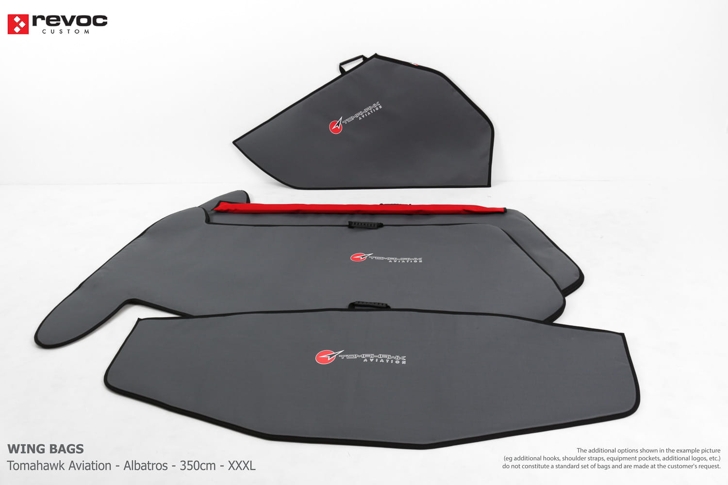 We create custom wing bags especially for you based on your individual order. You can select the colors, add a logo, include the model name on the cover, or choose additional markings and useful options.