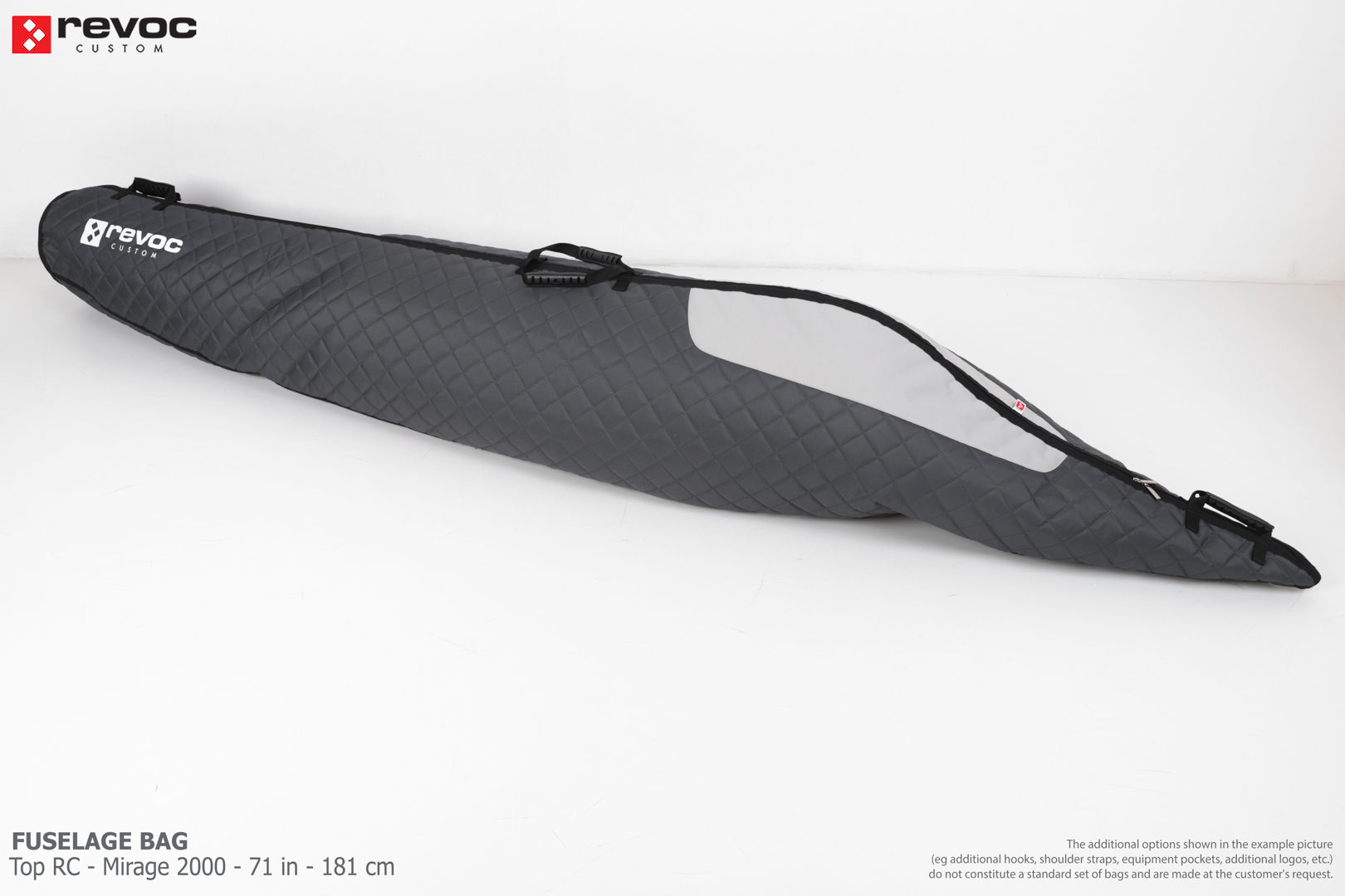 All REVOC RC bags are custom-made specifically for your model. Whether you have a jet, aerobatic aircraft RC, glider, or bi-plane RC model, our wing bags are completely tailored to fit the unique structure of your remote control planes. Each wing bag is crafted according to your individual preferences, parameters, and special requests. Please include any additional comments or wishes in the COMMENT section when placing your order, or email them directly to revoc@revoc.eu for a fully personalized wing bag RC experience.