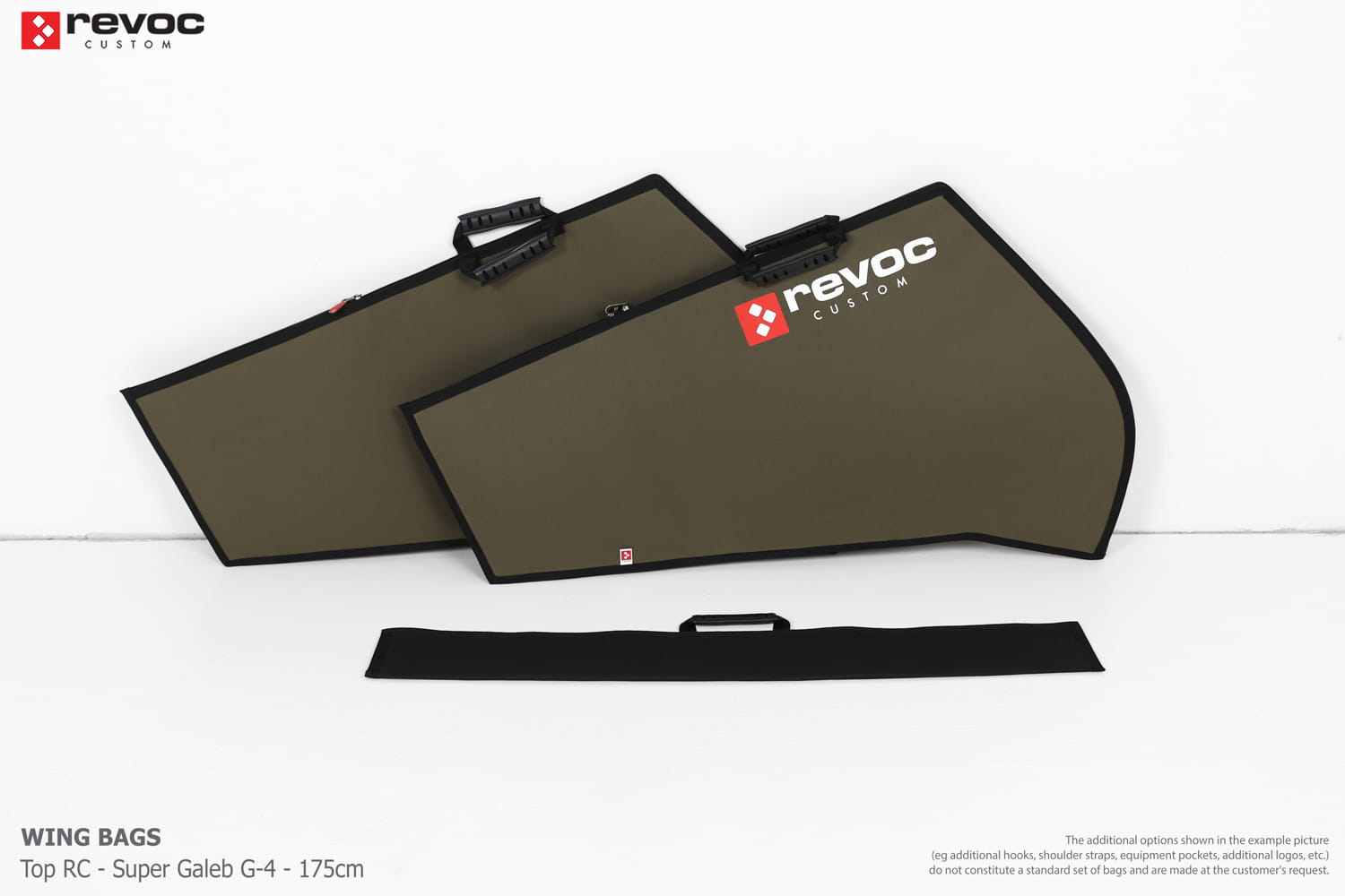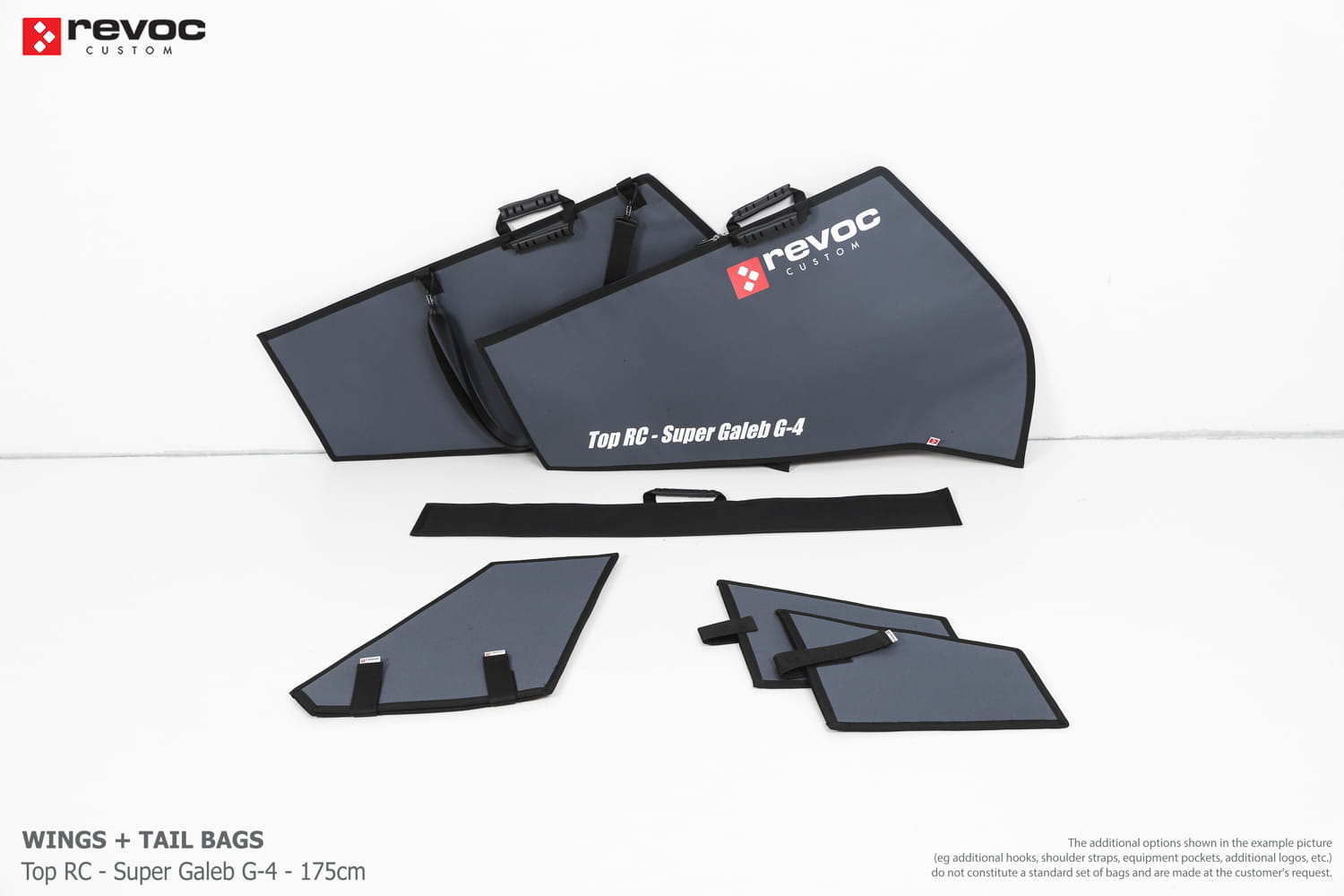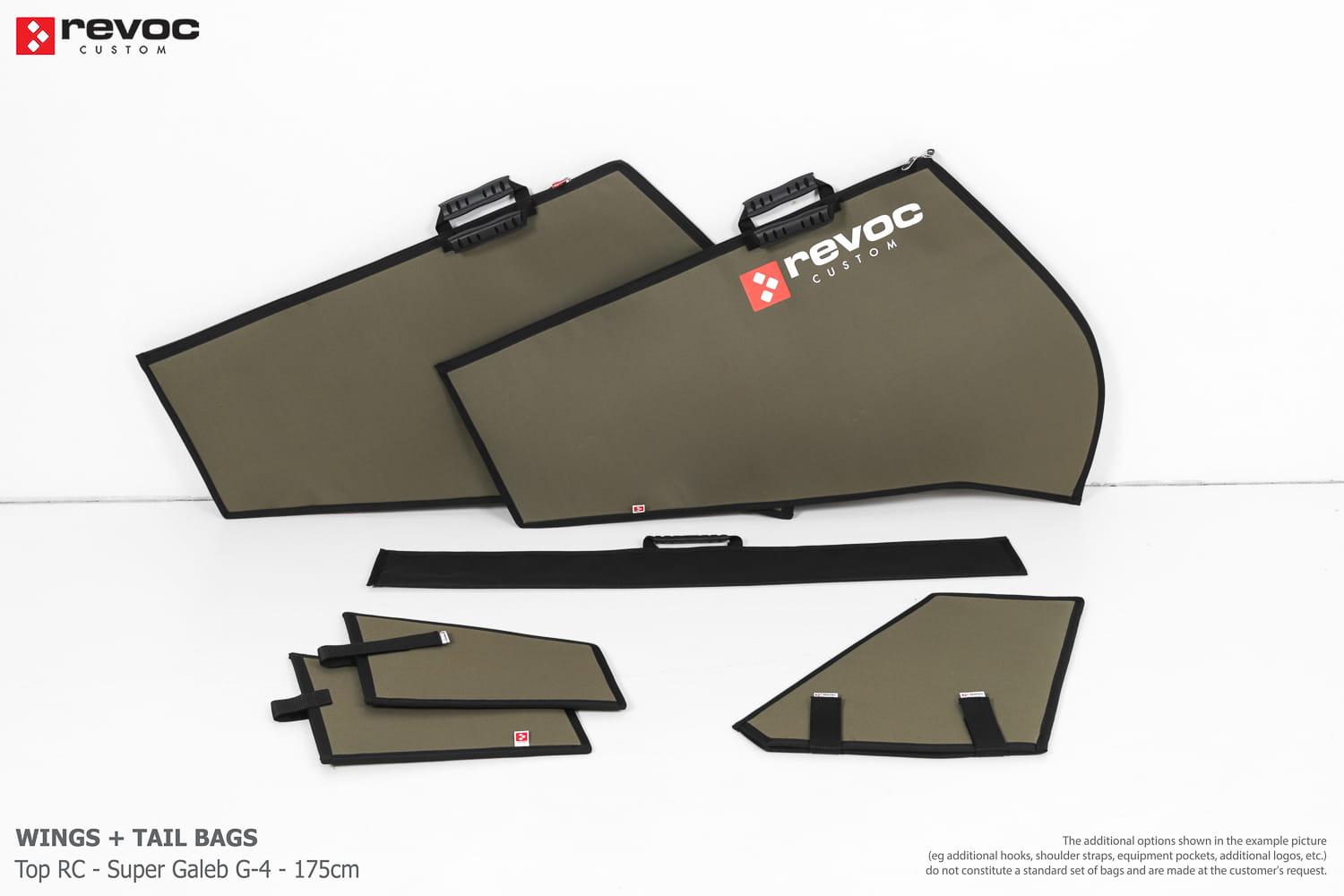 We make bags especially for you on your individual order. You can decide on the colors, choose a logo, put the model name on the cover, additional markings or choose a number of useful additional options. The custom color scheme which is a detailed reproduction of the model's painting can be ordered individually - contact us for the offer: revoc@revoc.eu