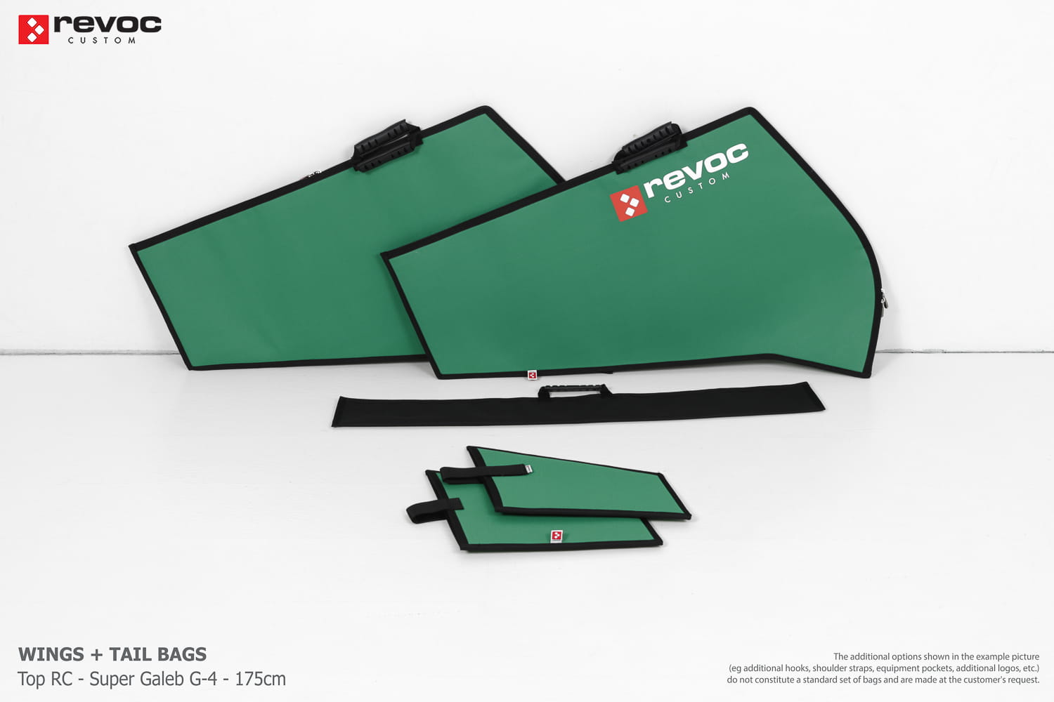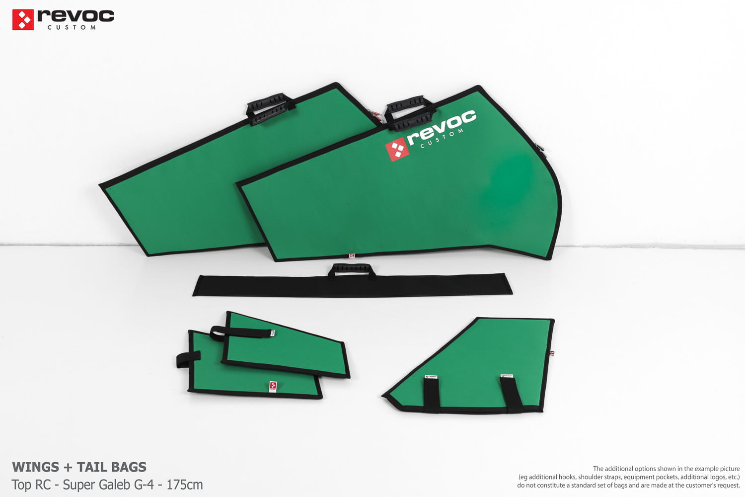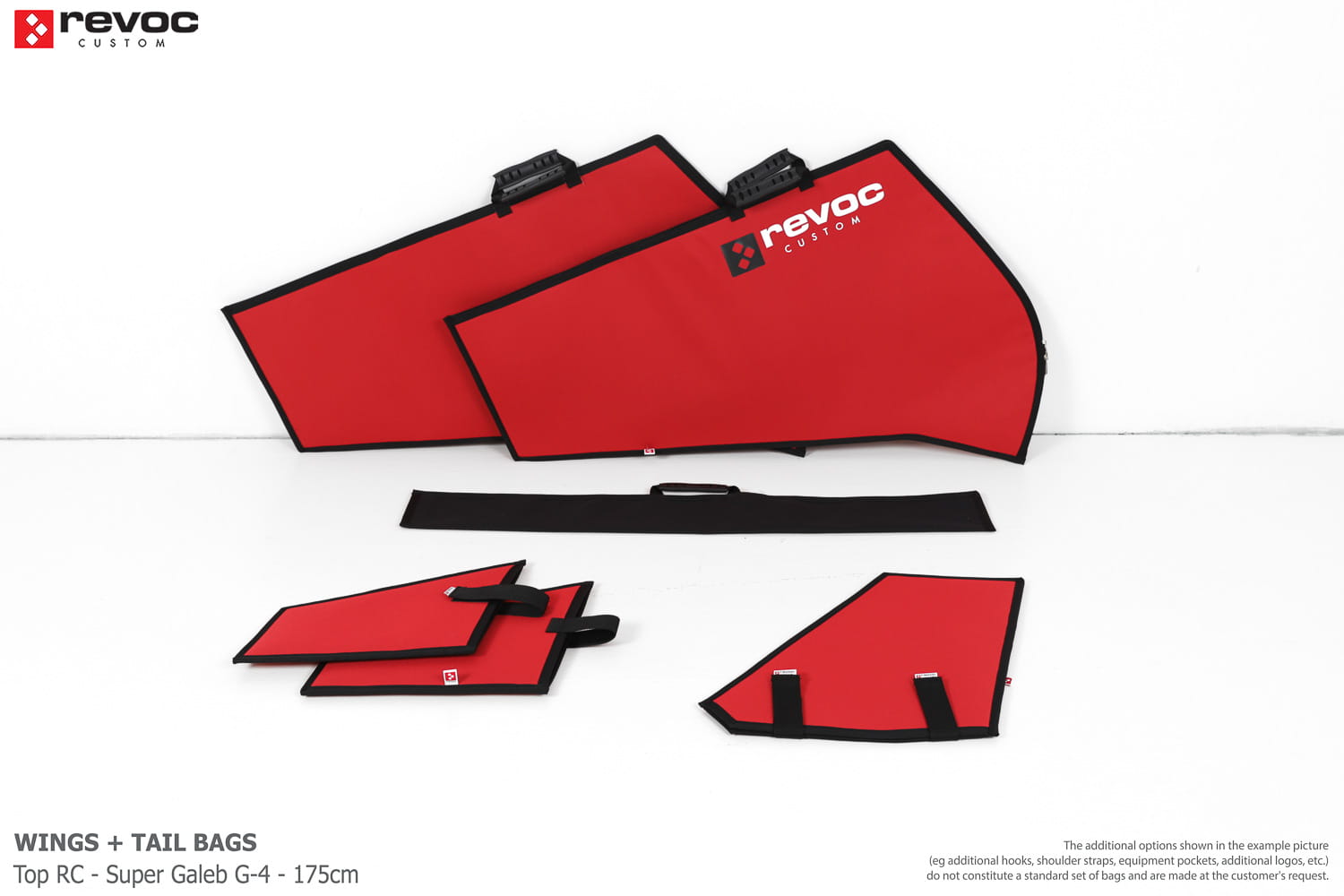 We make bags especially for you on your individual order. You can decide on the colors, choose a logo, put the model name on the cover, additional markings or choose a number of useful additional options. The custom color scheme which is a detailed reproduction of the model's painting can be ordered individually - contact us for the offer: revoc@revoc.eu