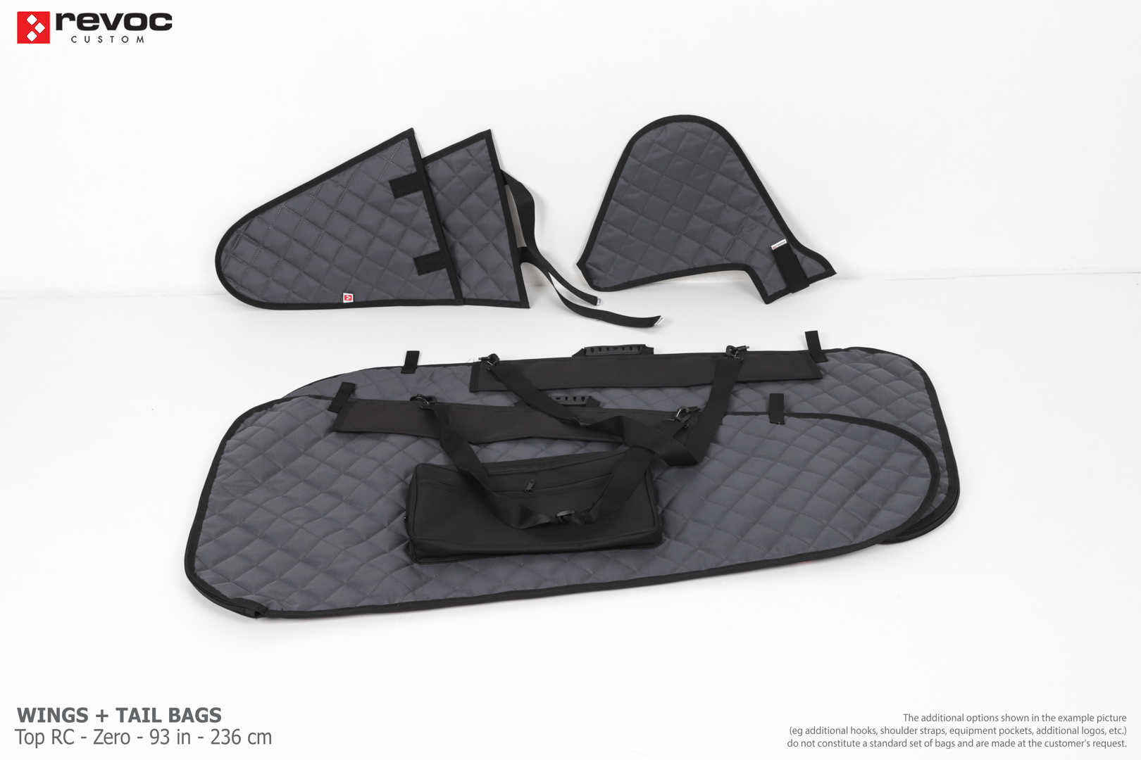 We create custom wing bags especially for you based on your individual order. You can select the colors, add a logo, include the model name on the cover, or choose additional markings and useful options.