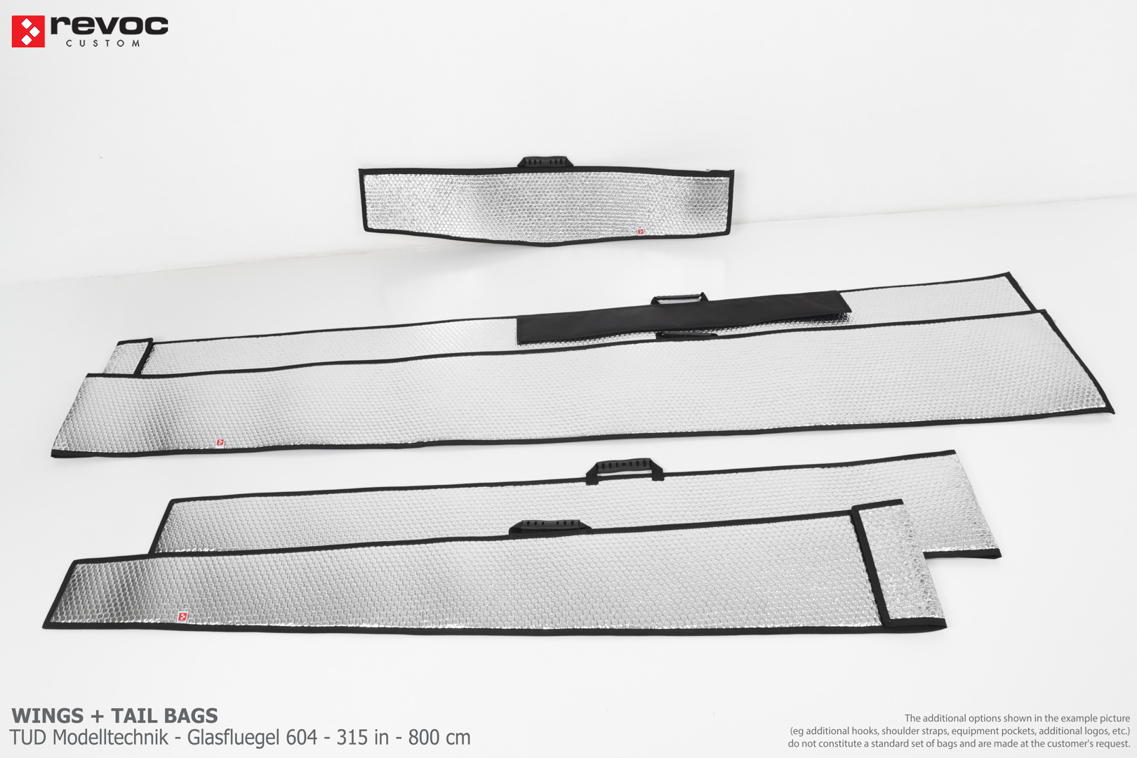 All REVOC bags are made especially for your model. They are completely tailored to the specific structure of your aircraft - regardless of whether it is a JET model, aerobatic model, glider or bi-plane model. Bags are made according to your comments, individual parameters and wishes. Please write your additional comments and wishes in the COMMENT section or send them directly to the e-mail revoc@revoc.eu after placing the order.