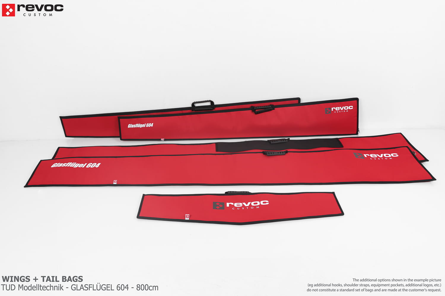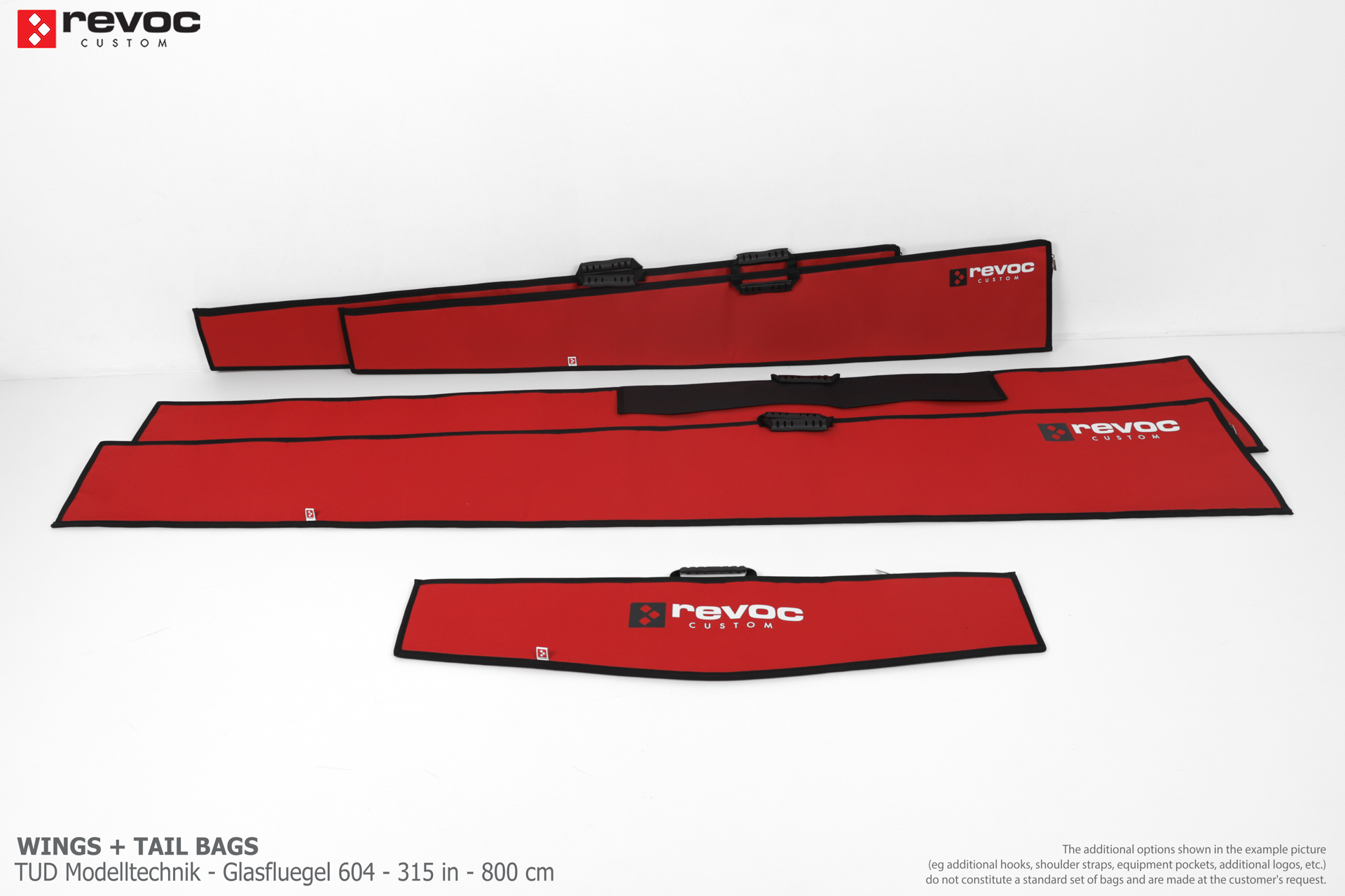 We make bags especially for you on your individual order. You can decide on the colors, choose a logo, put the model name on the cover, additional markings or choose a number of useful additional options. The custom color scheme which is a detailed reproduction of the model's painting can be ordered individually - contact us for the offer: revoc@revoc.eu