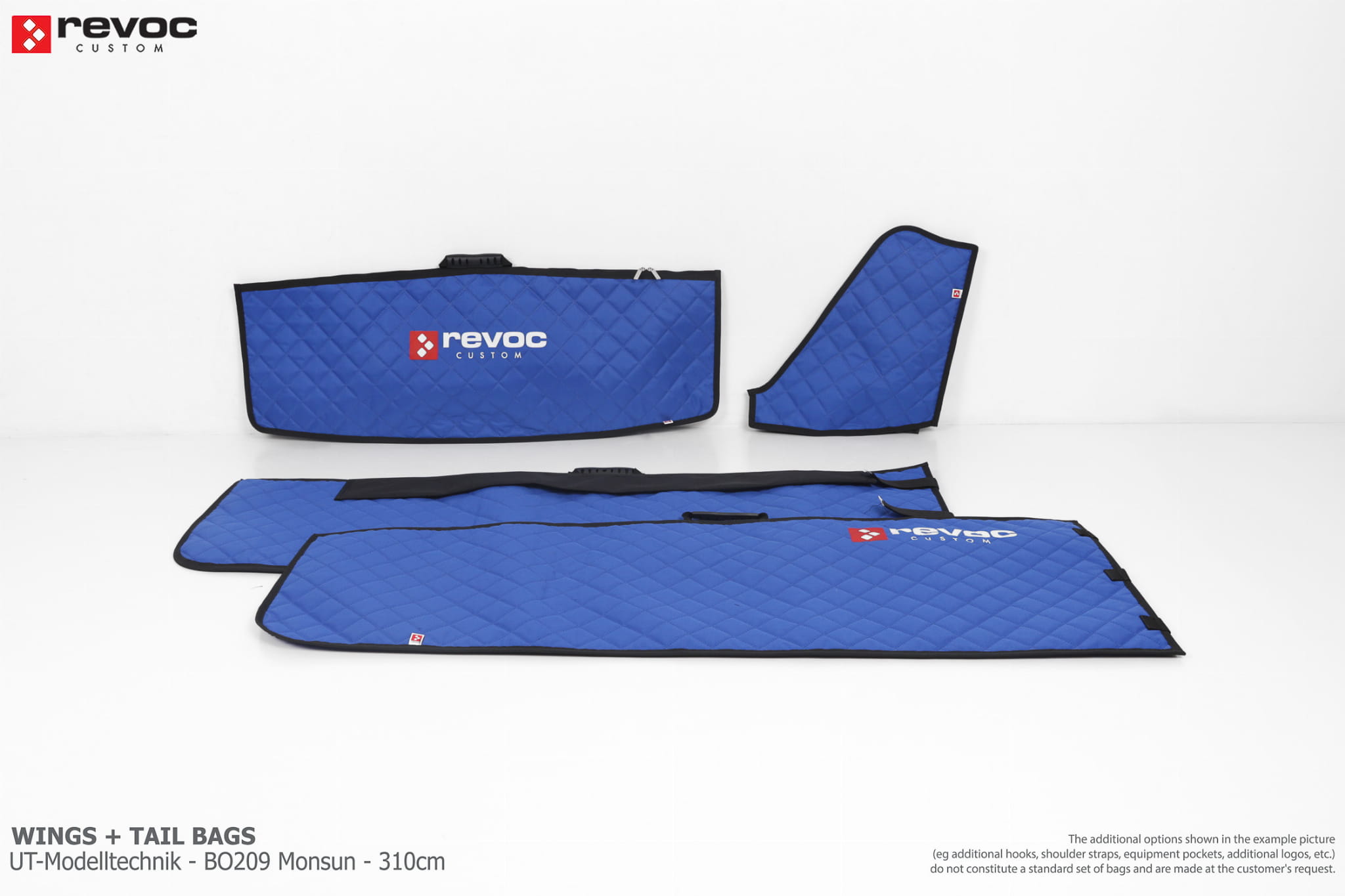 All REVOC RC bags are custom-made specifically for your model. Whether you have a jet, aerobatic aircraft RC, glider, or bi-plane RC model, our wing bags are completely tailored to fit the unique structure of your remote control planes. Each wing bag is crafted according to your individual preferences, parameters, and special requests. Please include any additional comments or wishes in the COMMENT section when placing your order, or email them directly to revoc@revoc.eu for a fully personalized wing bag RC experience.