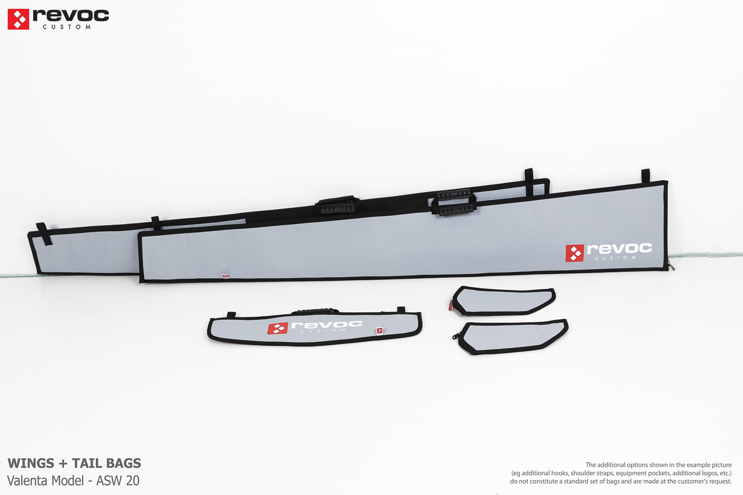 We create custom wing bags especially for you based on your individual order. You can select the colors, add a logo, include the model name on the cover, or choose additional markings and useful options.
