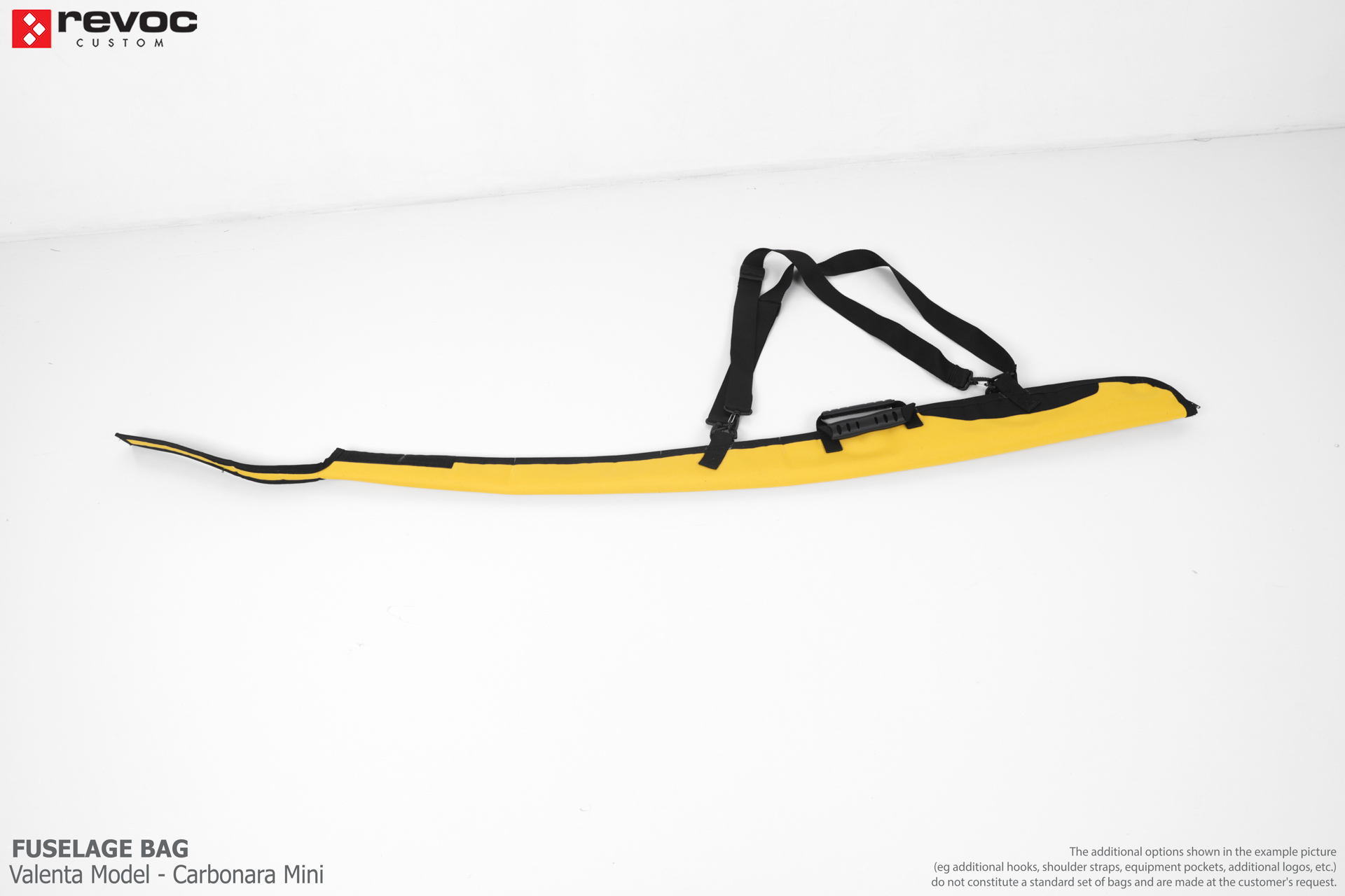 We make bags especially for you on your individual order. You can decide on the colors, choose a logo, put the model name on the cover, additional markings or choose a number of useful additional options. The custom color scheme which is a detailed reproduction of the models painting can be ordered individually - contact us for the offer: revoc@revoc.eu