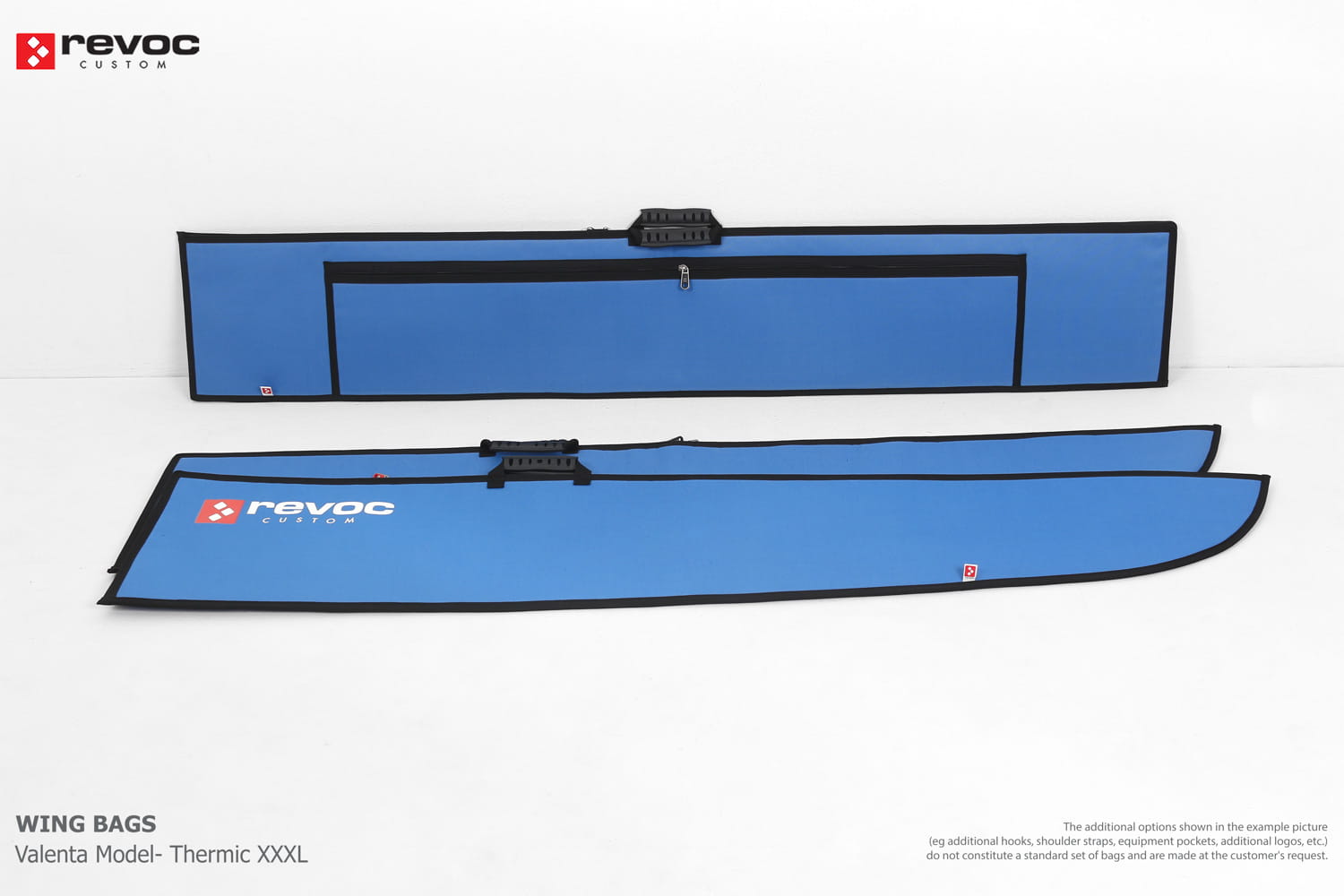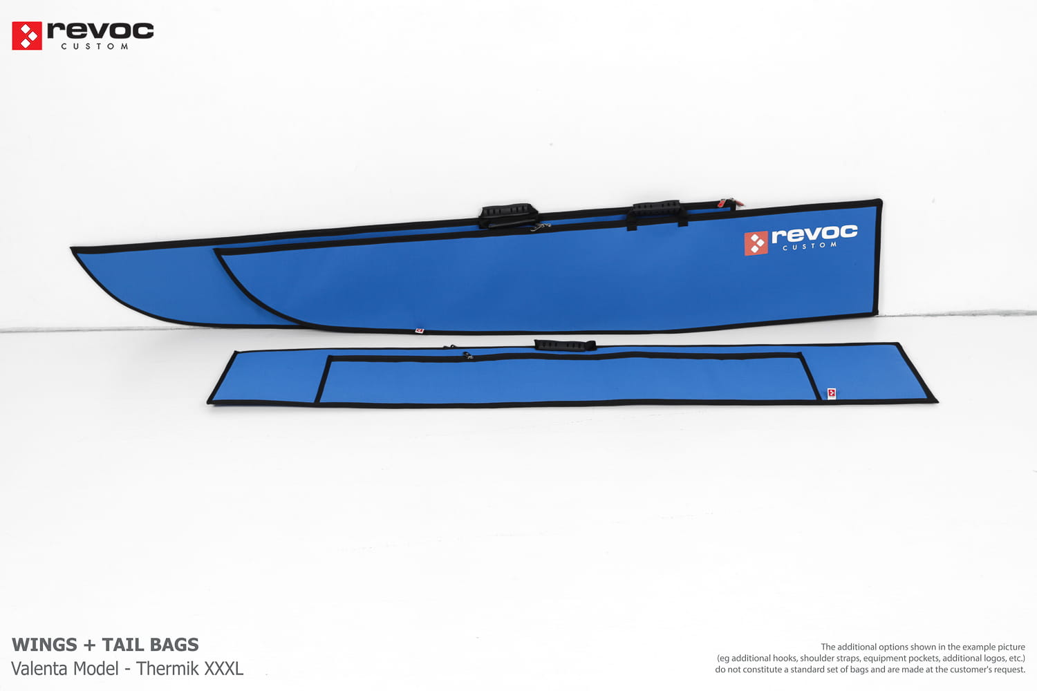 We make bags especially for you on your individual order. You can decide on the colors, choose a logo, put the model name on the cover, additional markings or choose a number of useful additional options. The custom color scheme which is a detailed reproduction of the model's painting can be ordered individually - contact us for the offer: revoc@revoc.eu