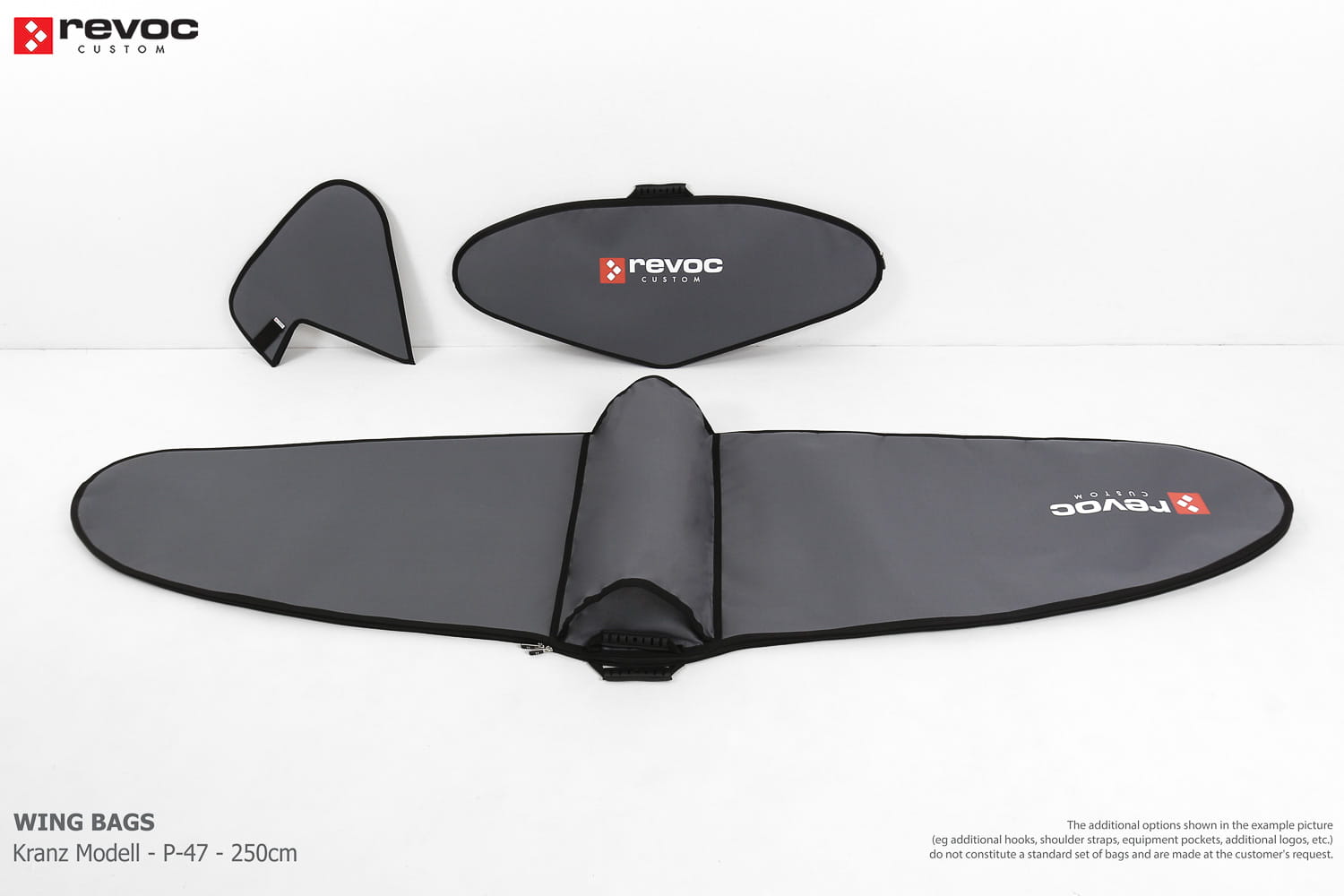 We create custom wing bags especially for you based on your individual order. You can select the colors, add a logo, include the model name on the cover, or choose additional markings and useful options.